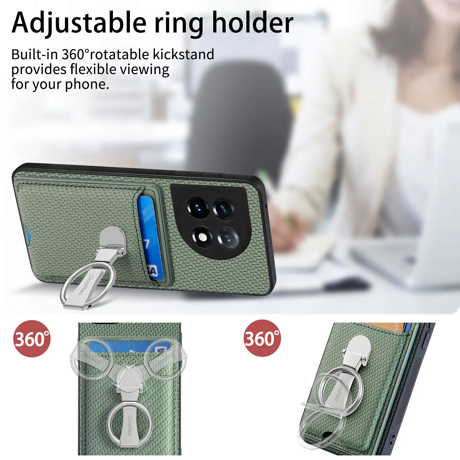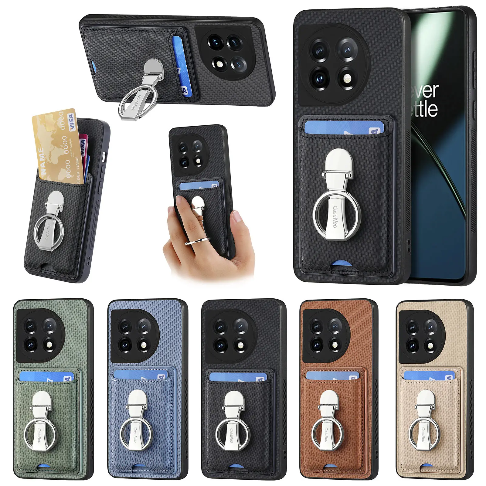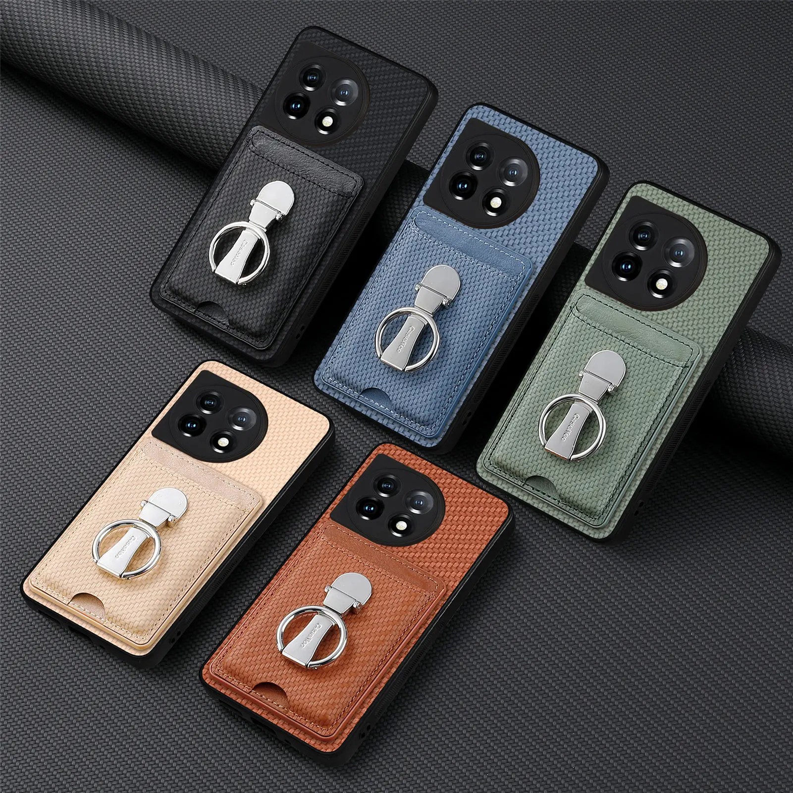Funda de teléfono de fibra de carbono con bolsa de tarjetas verticales para OnePlus Nord CE3 10T 11, soporte de anillo plegable, funda de bolsillo con soporte ultrafino