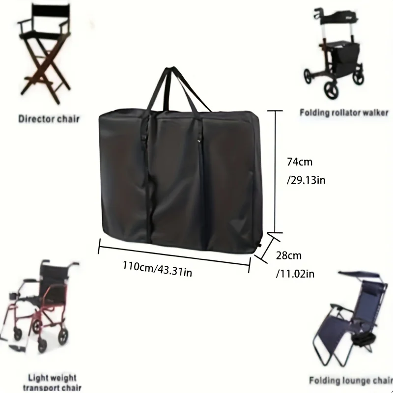 2.Dimensiones generosas:Mide 110 x 28 x 74 cm/43,3 pulgadas x 11,02 pulgadas x 29,13 pulgadas (largo x ancho x alto), esta bolsa plegable para silla de ruedas ofrece un amplio espacio de almacenamiento para sus necesidades.