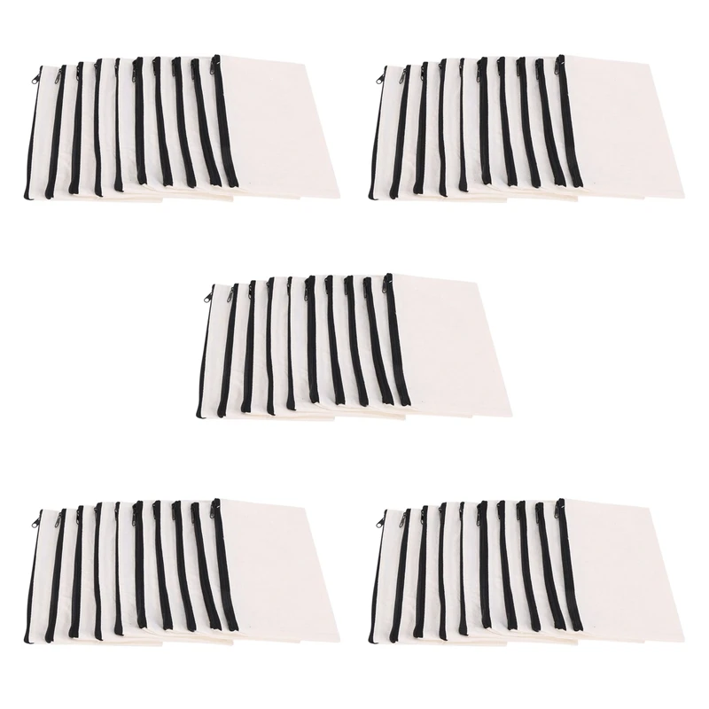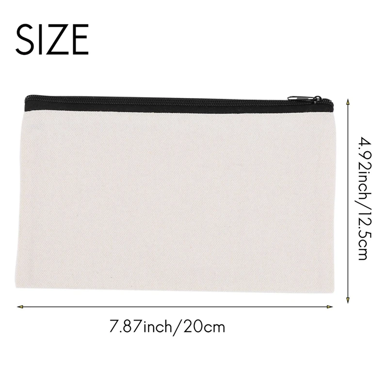 Bolsas de maquillaje de lona de 50 piezas, bolsas de lona con cremallera, estuche para lápices, bolsas para manualidades DIY en blanco, bolsa de cosméticos