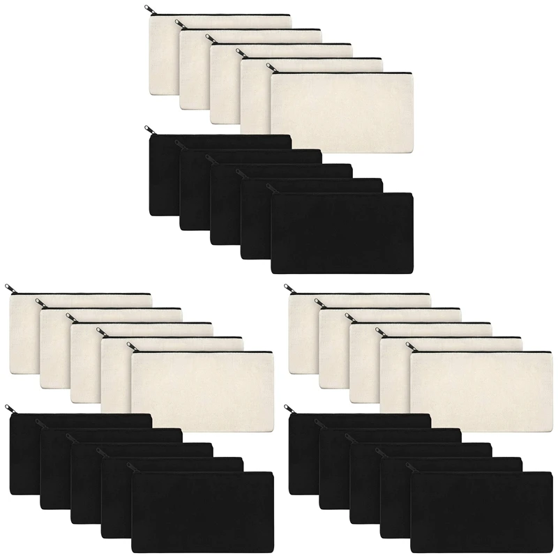 Bolsas de Lona con Cremallera para Maquillaje, Estuche de Lápices en Blanco para Manualidades, Viaje, Escuela, Manualidades, 30 piezas