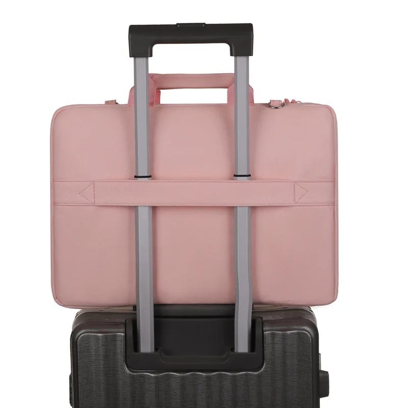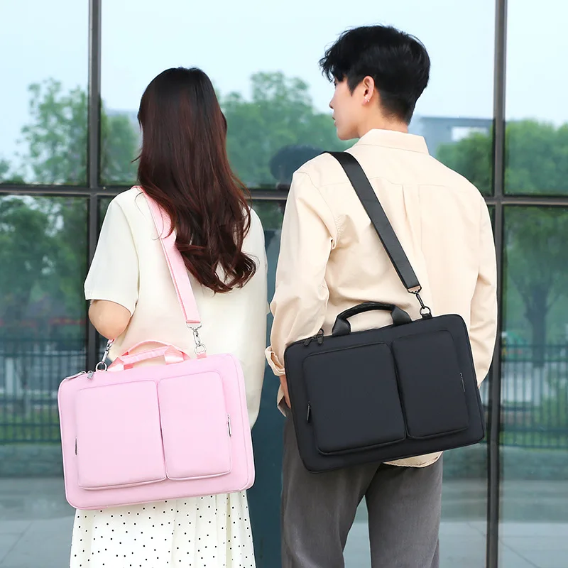 Hay bolsas para computadora de 14 y 15,6 pulgadas para elegir, la forma de gran capacidad no solo puede contener su computadora, sino también algunos artículos de mano como un libro de registro, bolígrafo, reloj, etc. Las áreas divididas mantienen los artículos organizados y fáciles de encontrar