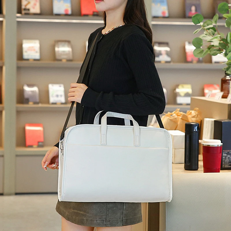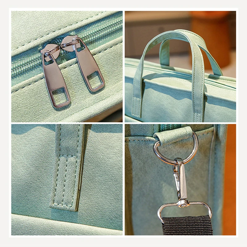 4.Diseño portátil: equipado con una correa para el hombro ajustable y desmontable, que puede satisfacer las necesidades de diferentes usuarios.El diseño del asa también la convierte en una práctica bolsa para computadora portátil.