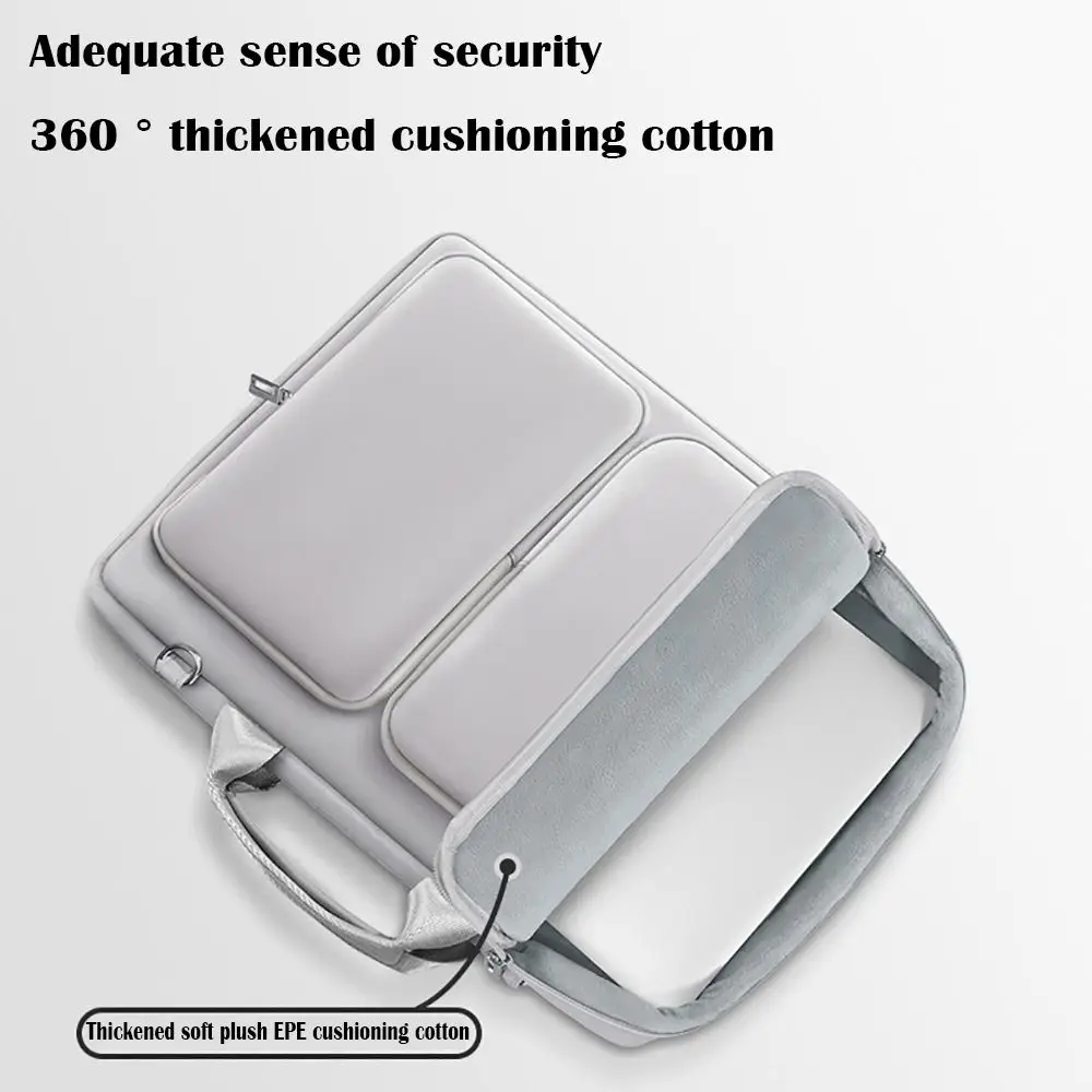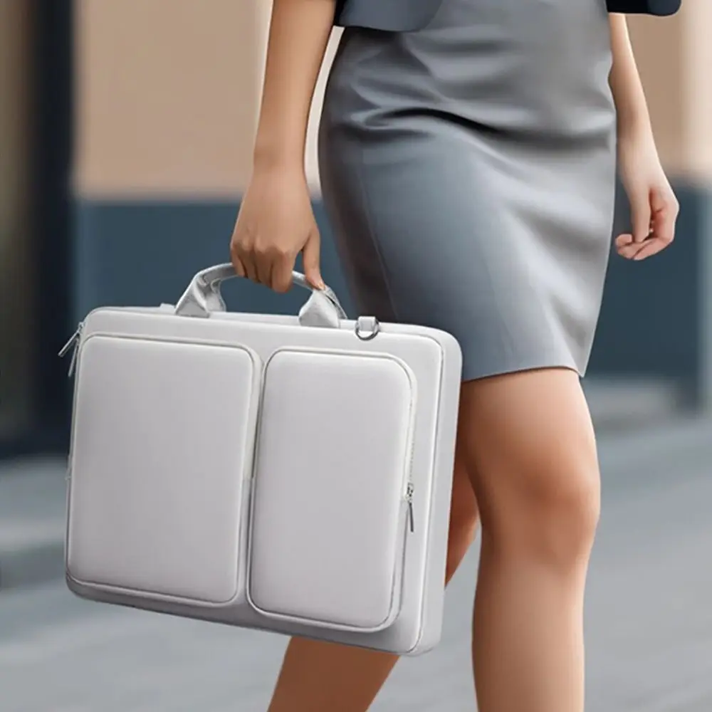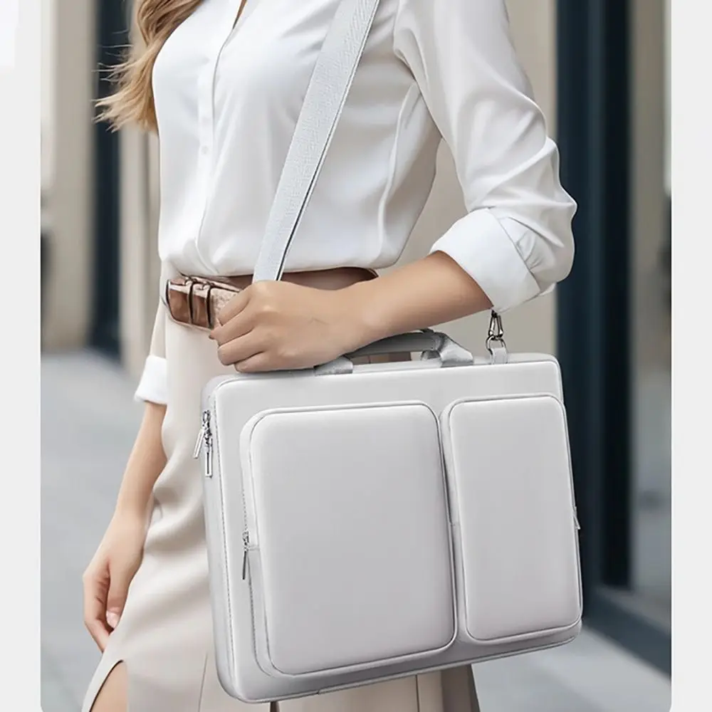 Nuevo y de alta calidad Material: poliéster, terciopelo de cristal suave Características: impermeable, a prueba de polvo, resistente al desgaste Género aplicable: hombres y mujeres Dureza: suave abierto: cremallera Tamaño: 14 pulgadas, 15,6 pulgadas Color: negro, gris Compatible: portátil, Tablet PC, cable de datos USB, ratón, unidad flash USB, Etc. Las dimensiones de la bolsa son las siguientes: 14 pulgadas: 39,5*29,3 cm; 15,6 pulgadas: 43*32*3cm. Características:-Diseño profesional y elegante: esta bolsa para portátil cuenta con un diseño elegante y profesional, perfecto para reuniones de negocios, uso de oficina y viajes. Su aspecto clásico complementa cualquier atuendo, lo que lo convierte en un accesorio ideal para el profesional moderno. -Compartimento dedicado para ordenador portátil: La bolsa cuenta con un compartimento acolchado diseñado específicamente para sostener y proteger de forma segura ordenadores portátiles de hasta 15,6 pulgadas. El forro suave y el acolchado reforzado aseguran que su dispositivo esté a salvo de golpes y arañazos. -Compartimentos de accesorios independientes: con múltiples compartimentos independientes, esta bolsa proporciona un amplio espacio para organizar sus accesorios. Los bolsillos separados para su cargador, mouse, bolígrafos y otros elementos esenciales mantienen todo en su lugar, asegurando un fácil acceso y evitando el desorden. -Material duradero y resistente al agua: Hecho de materiales de alta calidad y resistentes al agua, esta bolsa para portátil está diseñada para soportar el desgaste diario. La construcción robusta y las cremalleras duraderas garantizan un uso duradero, mientras que el exterior resistente al agua protege sus pertenencias de los elementos. -Cómodo y práctico: La bolsa cuenta con una correa de hombro cómoda y ajustable y asas acolchadas para facilitar el transporte. El panel trasero incluye una correa de equipaje, que le permite sujetar de forma segura la bolsa a su maleta durante el viaje. Los múltiples bolsillos externos proporcionan almacenamiento adicional para artículos de acceso rápido. El paquete incluye: 1 bolsa de hombro para ordenador portátil