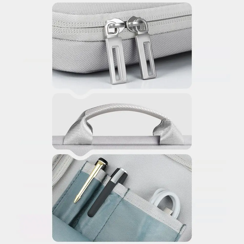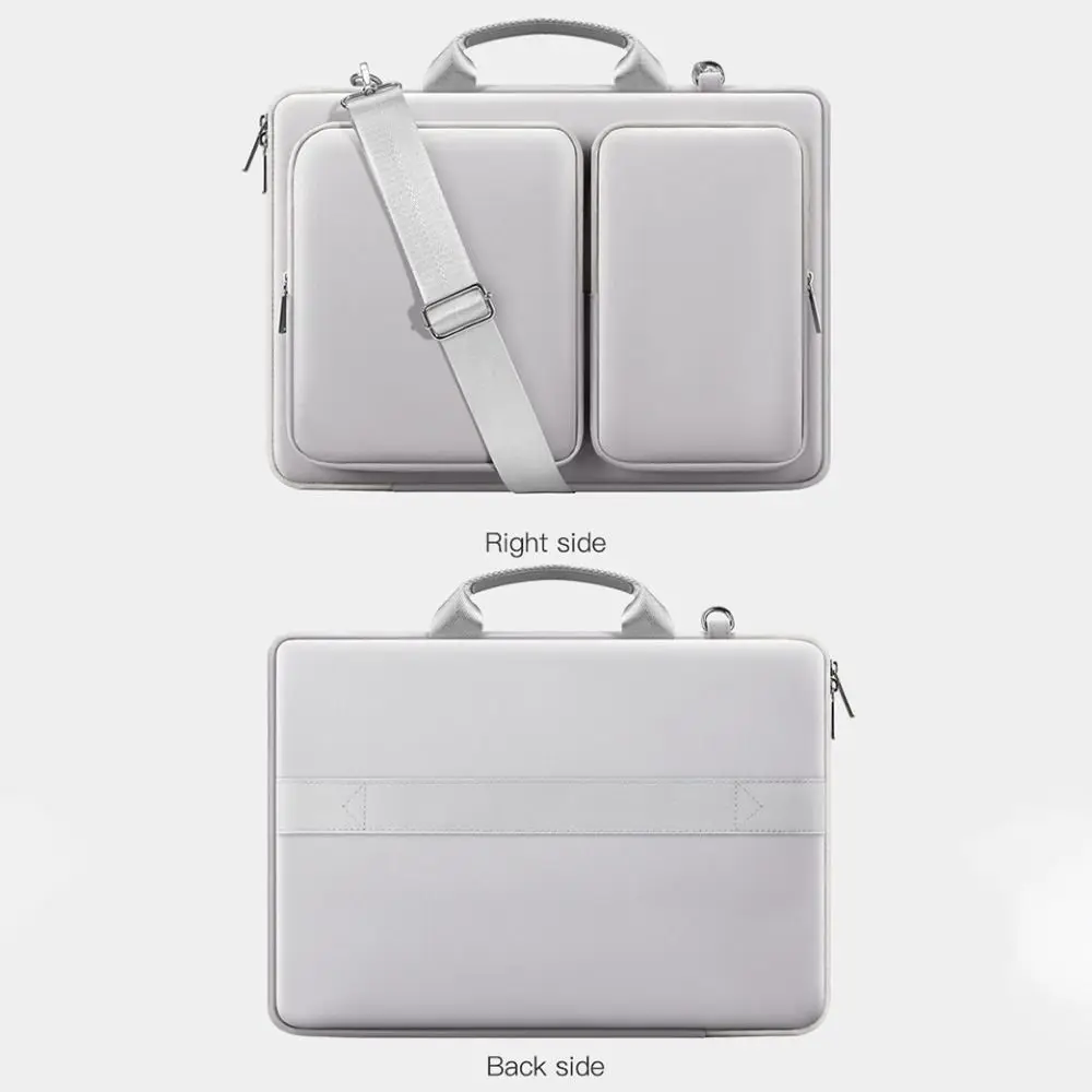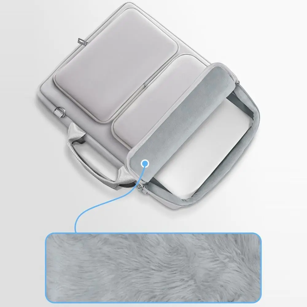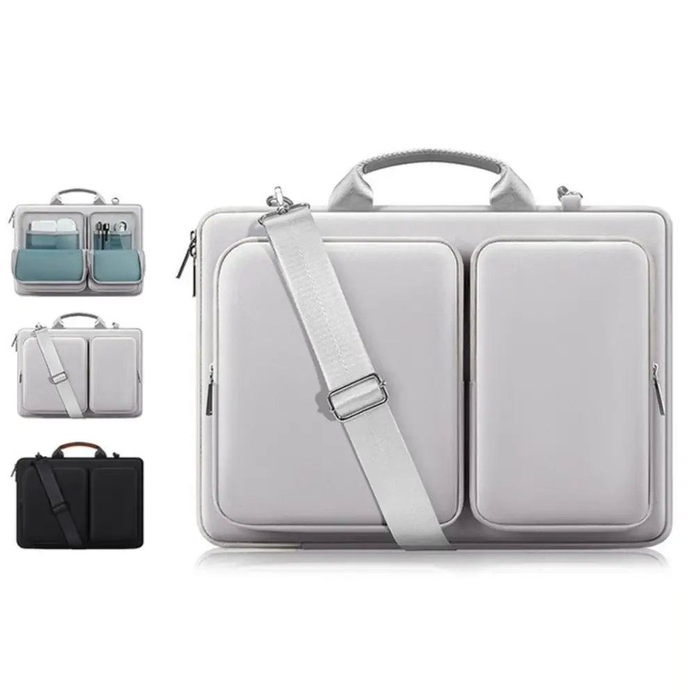 Nuevo y de alta calidad Material: poliéster, terciopelo de cristal suave Características: impermeable, a prueba de polvo, resistente al desgaste Género aplicable: hombres y mujeres Dureza: suave abierto: cremallera Tamaño: 14 pulgadas, 15,6 pulgadas Color: negro, gris Compatible: portátil, Tablet PC, cable de datos USB, ratón, unidad flash USB, Etc. Las dimensiones de la bolsa son las siguientes: 14 pulgadas: 39,5*29,3 cm; 15,6 pulgadas: 43*32*3cm. Características:-Diseño profesional y elegante: esta bolsa para portátil cuenta con un diseño elegante y profesional, perfecto para reuniones de negocios, uso de oficina y viajes. Su aspecto clásico complementa cualquier atuendo, lo que lo convierte en un accesorio ideal para el profesional moderno. -Compartimento dedicado para ordenador portátil: La bolsa cuenta con un compartimento acolchado diseñado específicamente para sostener y proteger de forma segura ordenadores portátiles de hasta 15,6 pulgadas. El forro suave y el acolchado reforzado aseguran que su dispositivo esté a salvo de golpes y arañazos. -Compartimentos de accesorios independientes: con múltiples compartimentos independientes, esta bolsa proporciona un amplio espacio para organizar sus accesorios. Los bolsillos separados para su cargador, mouse, bolígrafos y otros elementos esenciales mantienen todo en su lugar, asegurando un fácil acceso y evitando el desorden. -Material duradero y resistente al agua: Hecho de materiales de alta calidad y resistentes al agua, esta bolsa para portátil está diseñada para soportar el desgaste diario. La construcción robusta y las cremalleras duraderas garantizan un uso duradero, mientras que el exterior resistente al agua protege sus pertenencias de los elementos. -Cómodo y práctico: La bolsa cuenta con una correa de hombro cómoda y ajustable y asas acolchadas para facilitar el transporte. El panel trasero incluye una correa de equipaje, que le permite sujetar de forma segura la bolsa a su maleta durante el viaje. Los múltiples bolsillos externos proporcionan almacenamiento adicional para artículos de acceso rápido. El paquete incluye: 1 bolsa de hombro para ordenador portátil