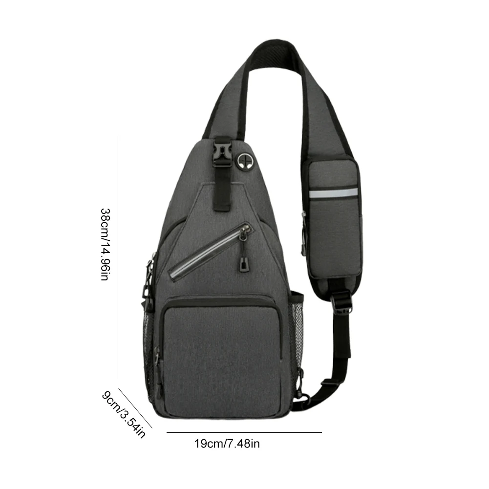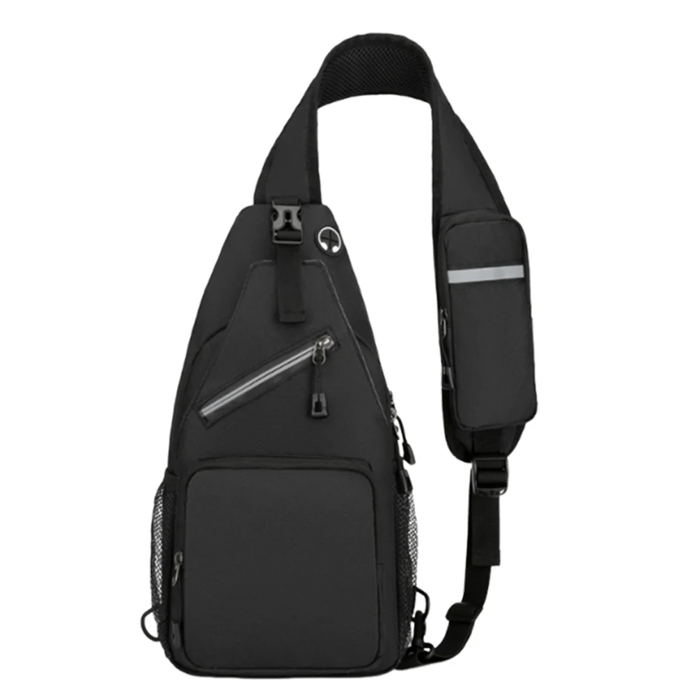resistentey material de la bolsa bandolera de tela Oxford resistente al agua, el respaldo de malla transpirable promueve la comodidad, la ventilación y la disipación del calor.Las correas suaves ensanchadas con rayas reflectantes son ideales para correr de noche.