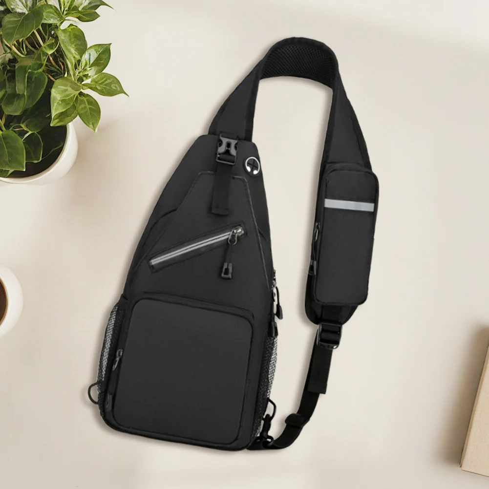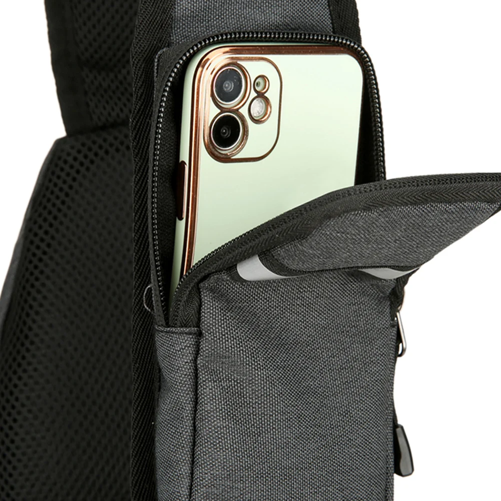 Bolso de pecho que combina con todo con orificio para auriculares, bolso de hombro versátil, bolso bandolera de tela Oxford impermeable, bolsa para teléfono con cremallera para exteriores
