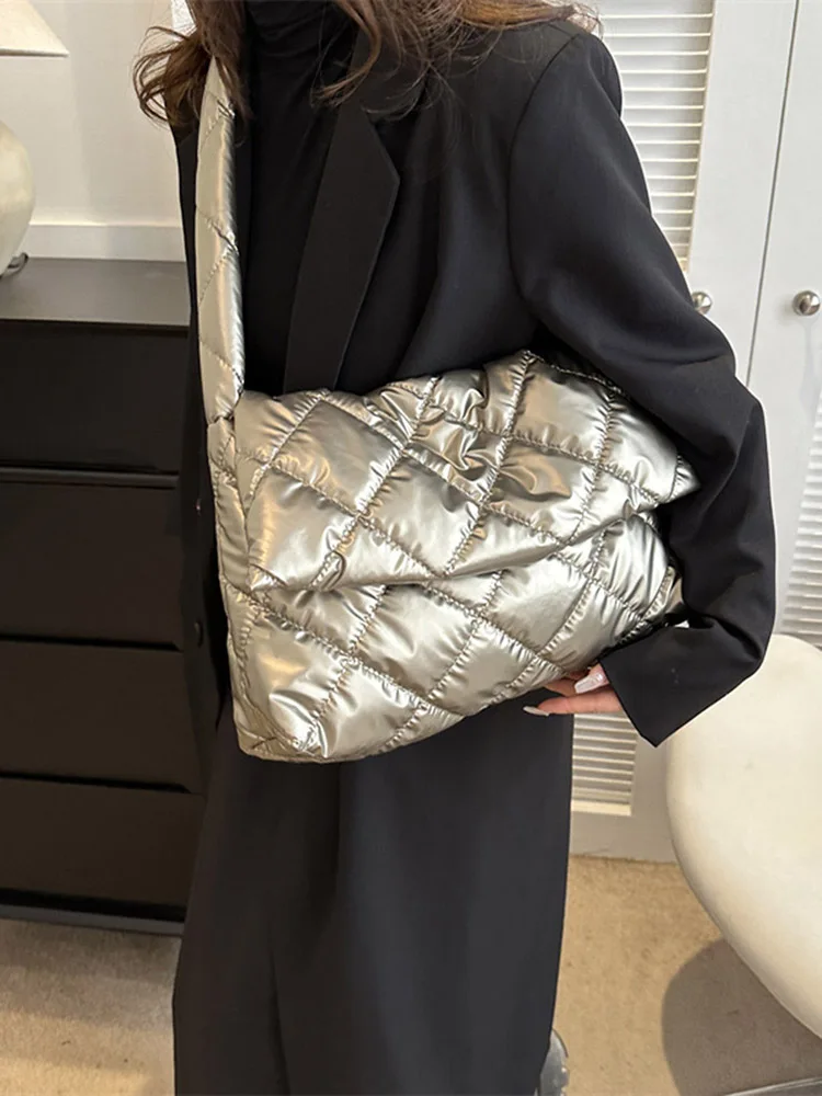 3. Diseño práctico:Con Almacenamiento de bolsillo y estructura fácil de llevar, esta nueva tendencia de bolsos grandes acolchados combina funcionalidad con moda. Mantenga sus pertenencias seguras y accesibles en todo momento, lo que lo hace perfecto para el uso diario.