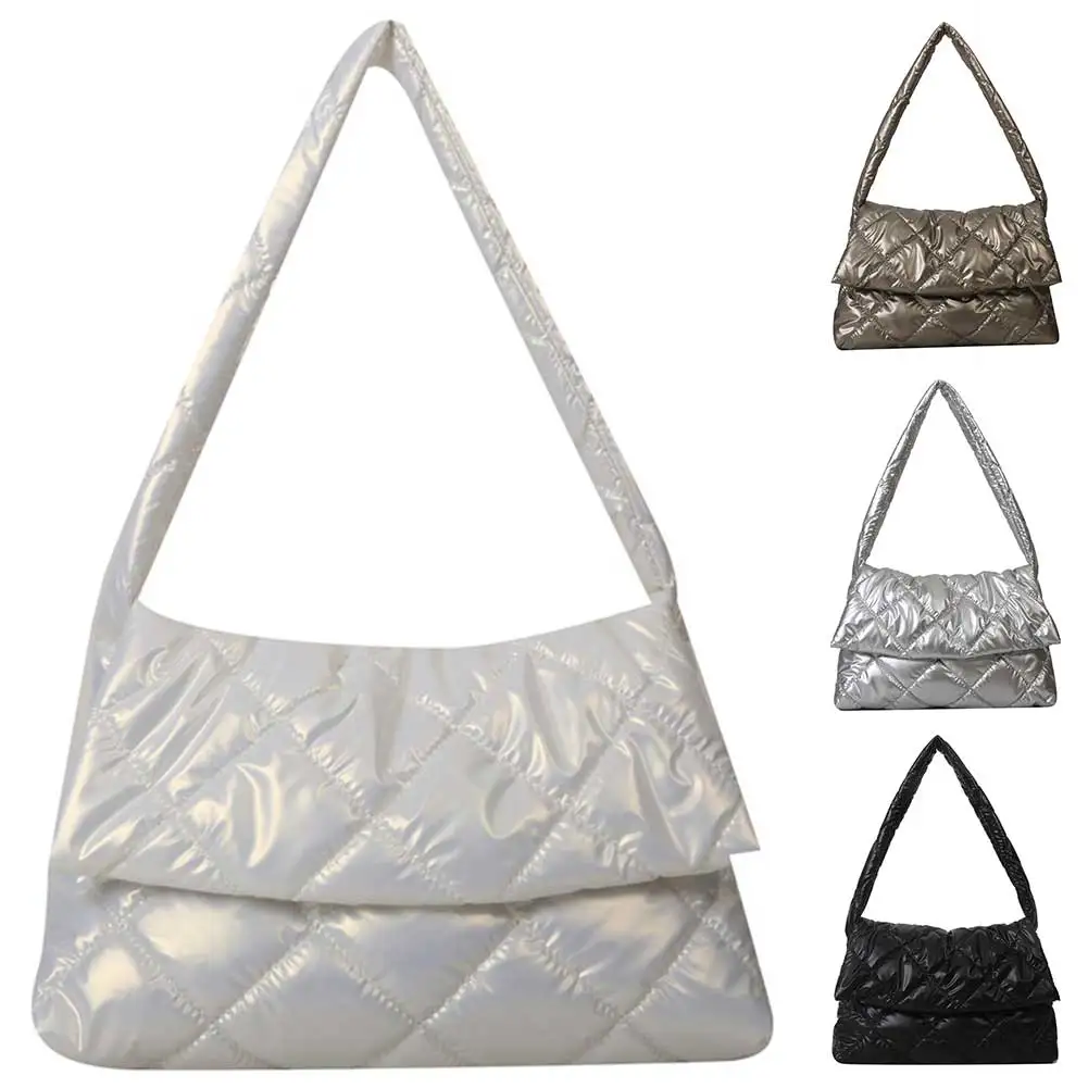 Comprar Bolsos laterales de nailon suave para mujer, bolso de mano hinchado con correa ajustable, gran capacidad, nueva tendencia, bolsos grandes acolchados, bolso de viaje Simple