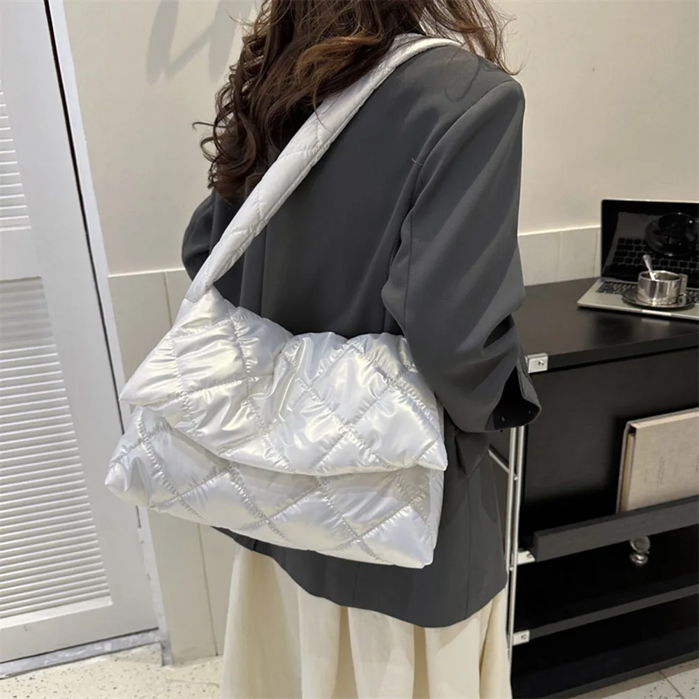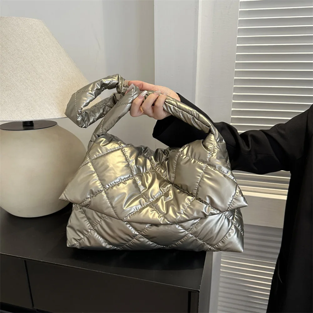 3. Diseño práctico:Con Almacenamiento de bolsillo y estructura fácil de llevar, esta nueva tendencia de bolsos grandes acolchados combina funcionalidad con moda. Mantenga sus pertenencias seguras y accesibles en todo momento, lo que lo hace perfecto para el uso diario.