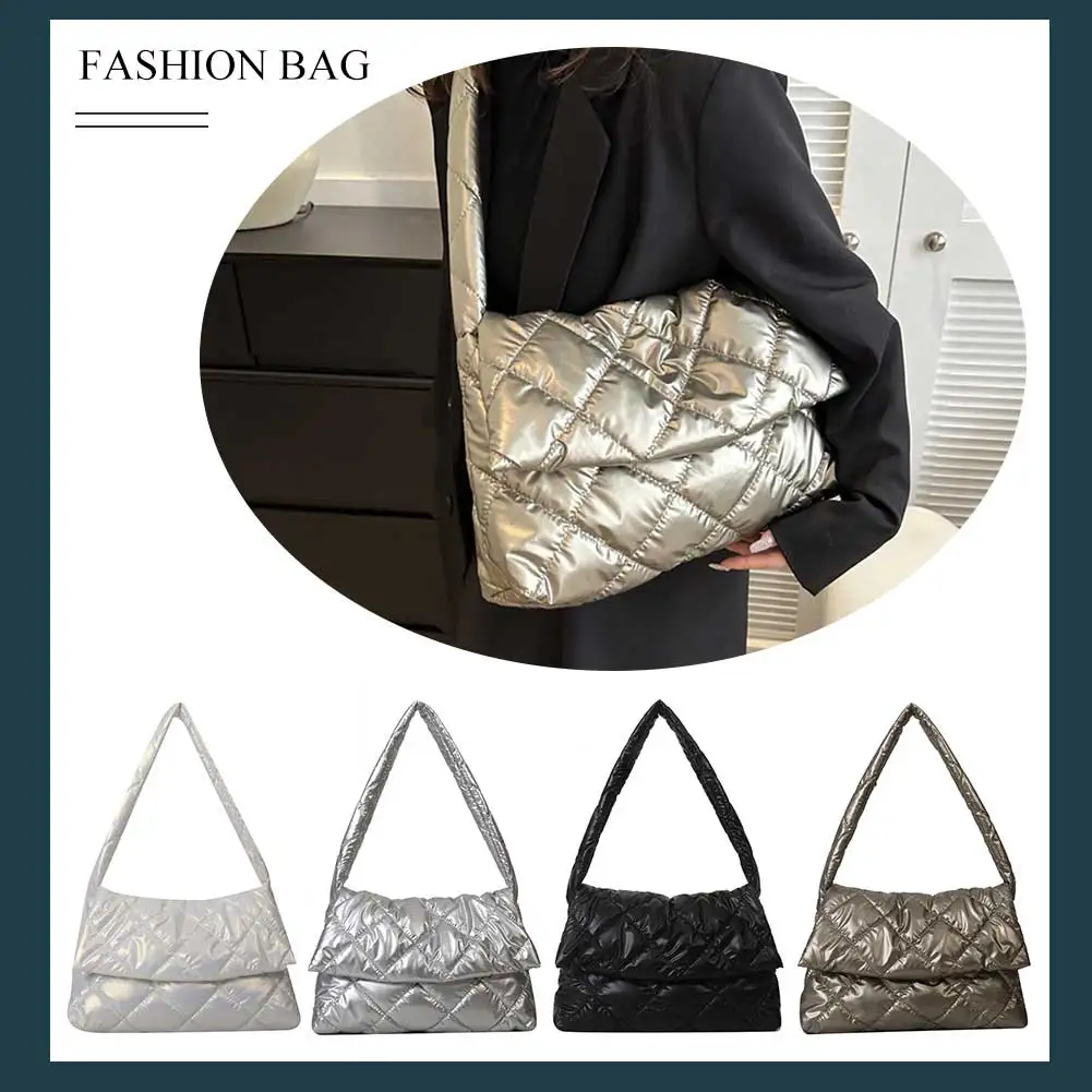 Comprar Bolsos laterales de nailon suave para mujer, bolso de mano hinchado con correa ajustable, gran capacidad, nueva tendencia, bolsos grandes acolchados, bolso de viaje Simple