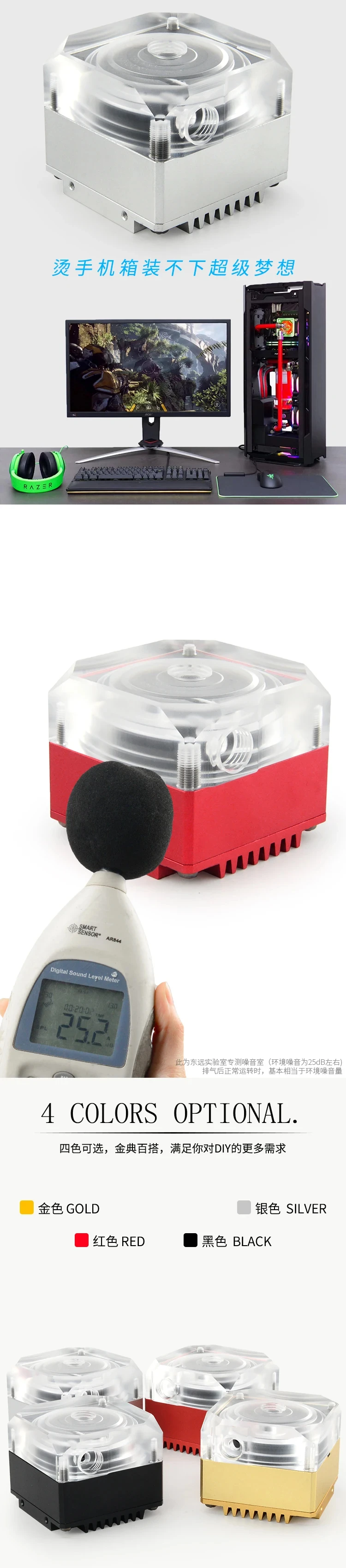 Bomba de agua de refrigeración Syscooling DC 12V para ordenador DIY bomba silenciosa de refrigeración por agua gran potencia 1200L/H flujo G1/4 rosca