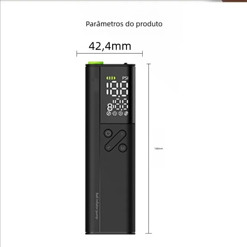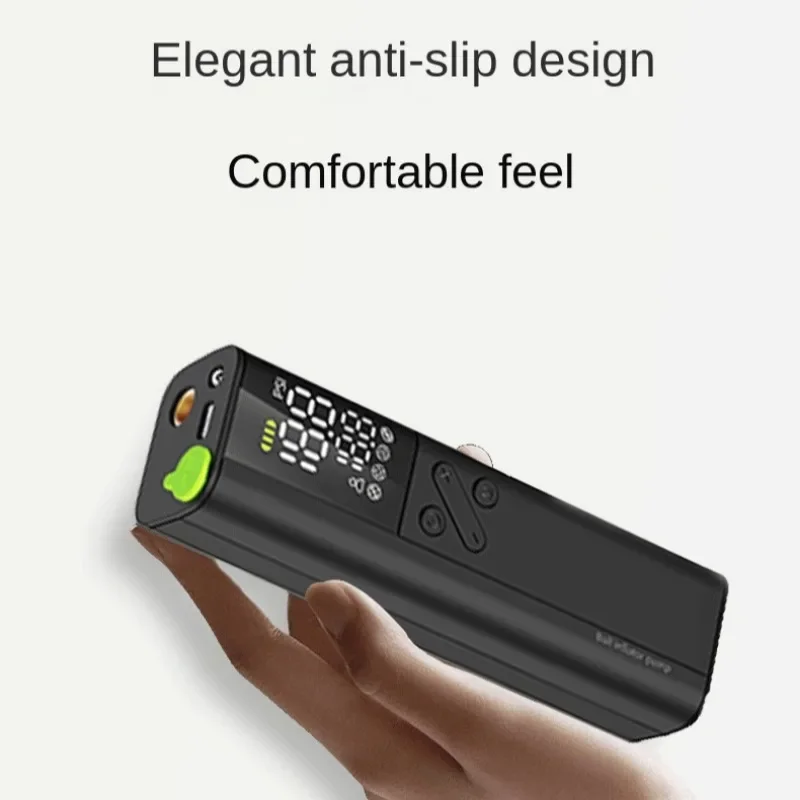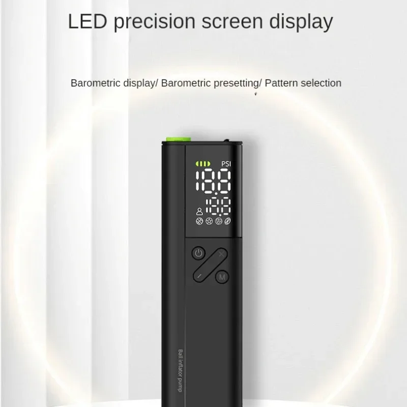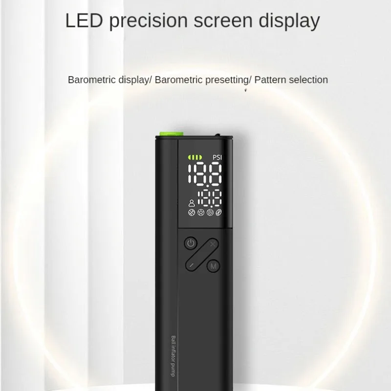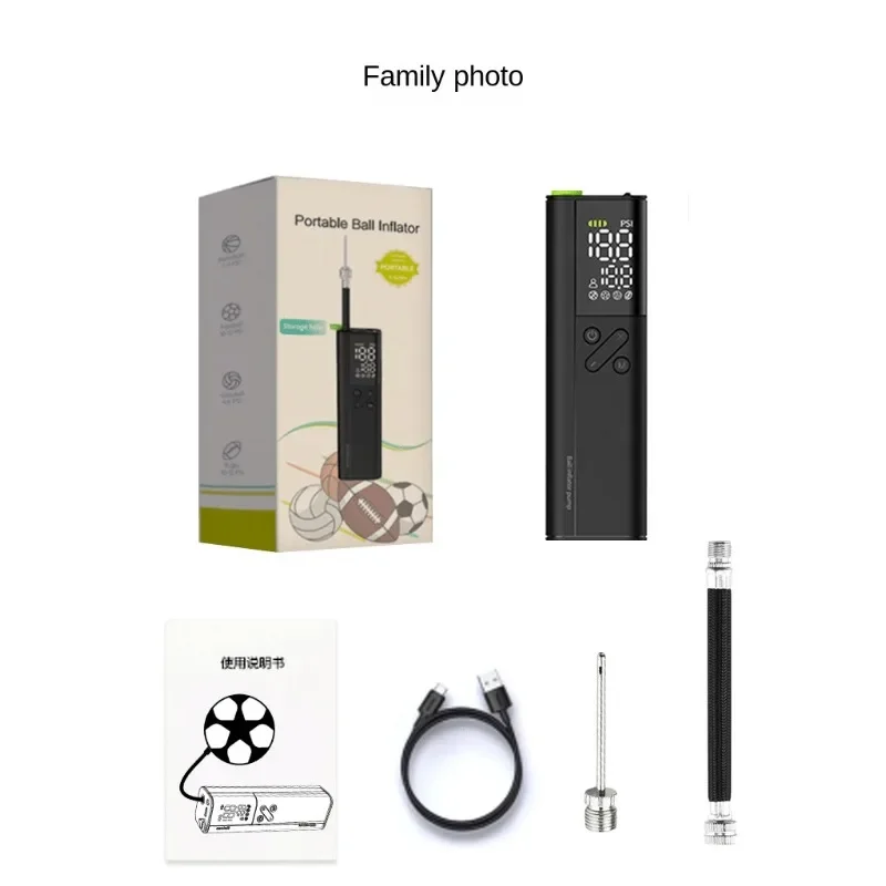 Descripción del producto: Eficiencia de inflado (probado) 70 segundos (condiciones de prueba: 5o balón de fútbol, de 0 a 9 PSI) Durabilidad de carga única (probado) Puede cargar completamente 100 balones de fútbol (condiciones de prueba: 5o balón de fútbol, de 0 a 9 PSI) Funciones principales : Inflar varios productos de pelota, detectar presión de bola, iluminación de emergencia, con luz de señal SOS Características del producto: Batería de alimentación incorporada, 5 modos de inflado, pantalla digital de doble fila, presión3, informe de transporte aéreo, informe de transporte marítimo, lista de embalaje, bomba de aire x1, tubo de aire x1, cable de carga x1, boquilla de aire x1, bolsa de almacenamiento x1, escenario de uso para inflar bolas