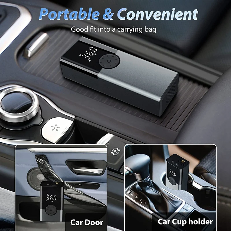 Comprar Bomba de bicicleta eléctrica de 150PSI, compresor de batería con Pantalla Digital y luz de emergencia, para coches, motocicletas