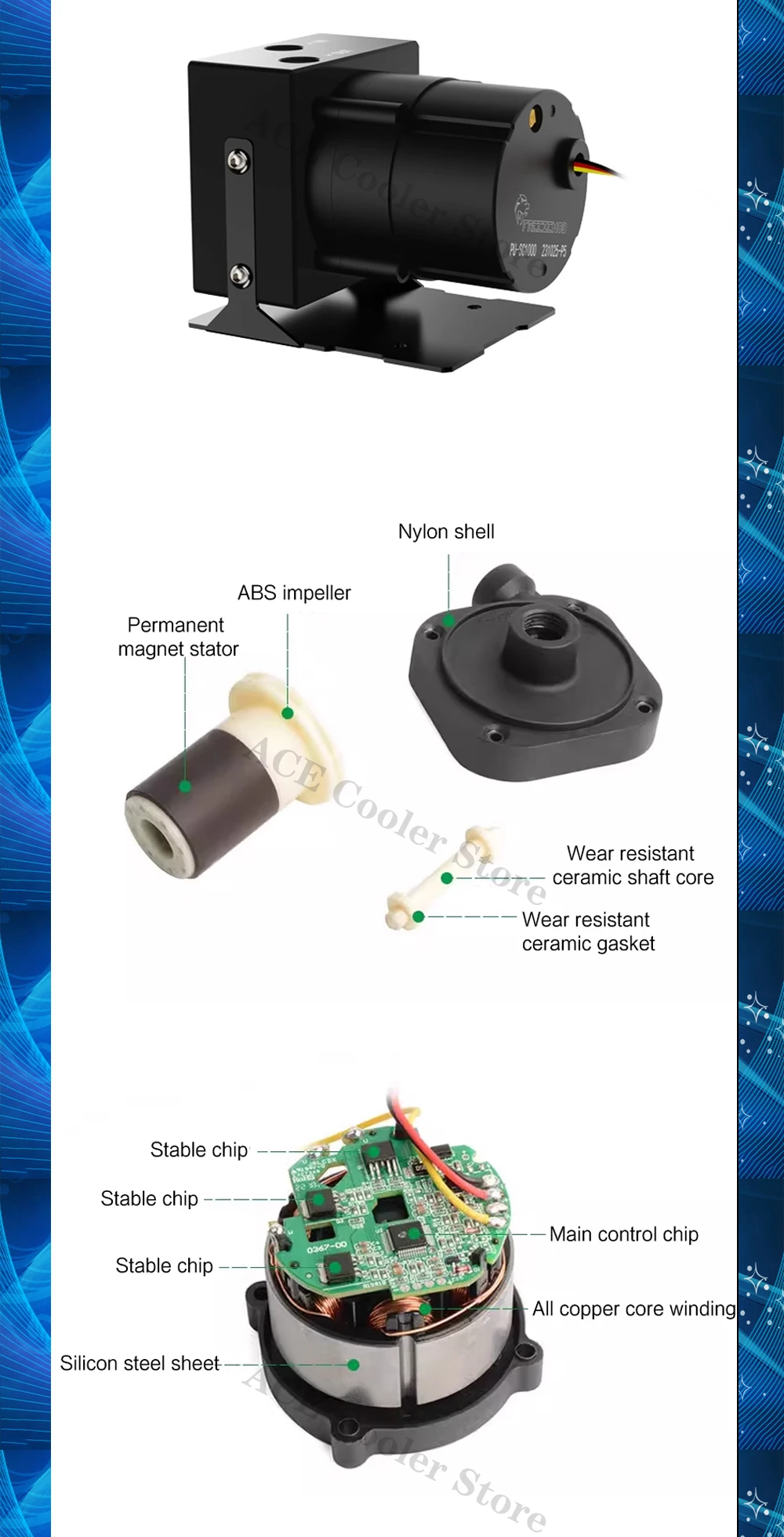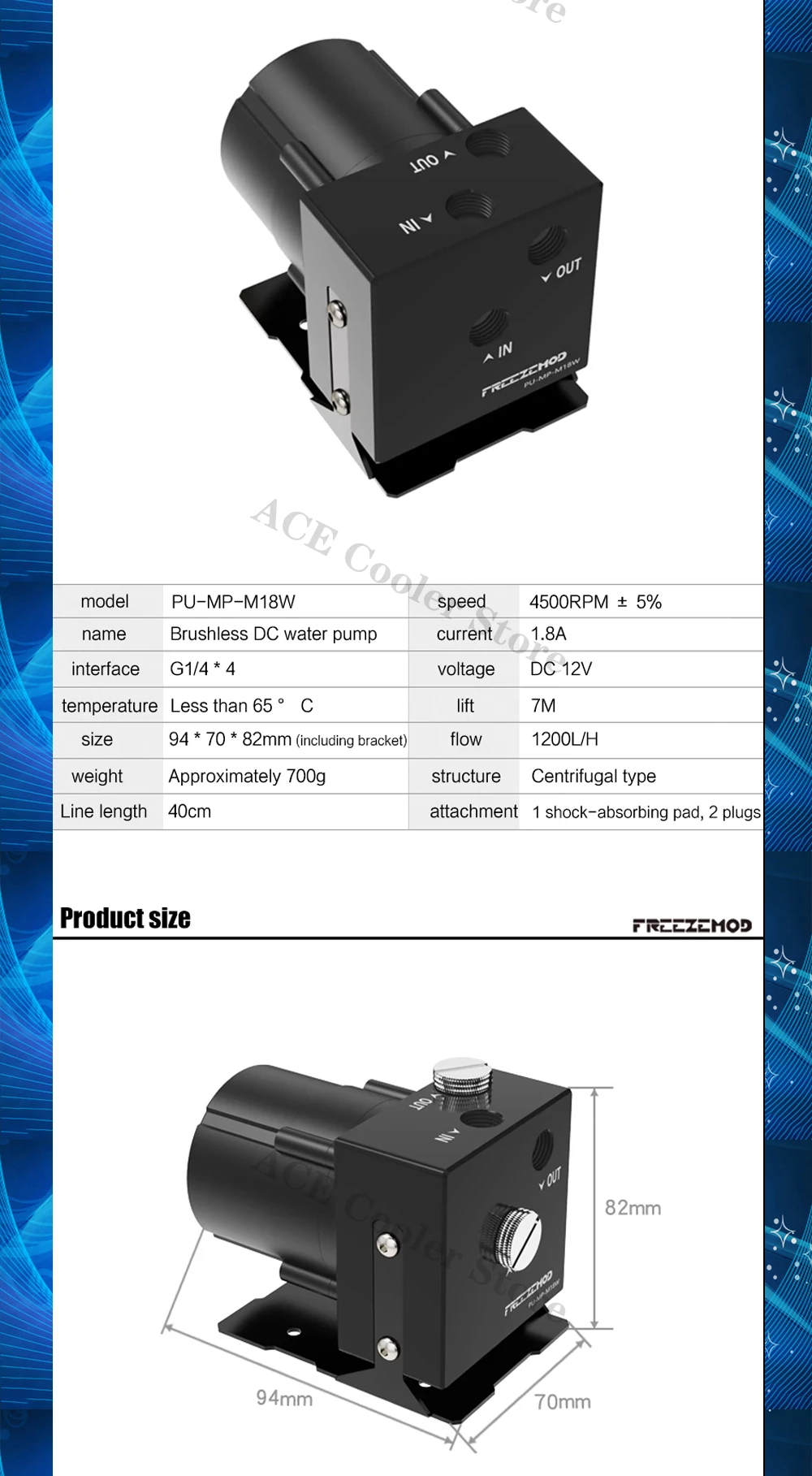 Voltaje de funcionamiento: 8-18 V (el voltaje más bajo afectará los parámetros de la bomba)