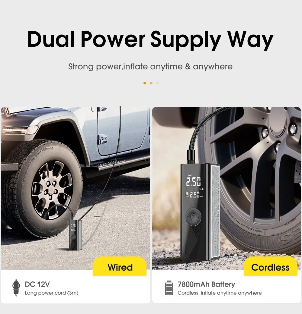 Comprar Bomba de inflado de neumáticos superpotente, compresor de aire portátil para coche, 12V, 150Psi, 2600mAh, X3, para camionetas, SUV, motocicleta, inalámbrica