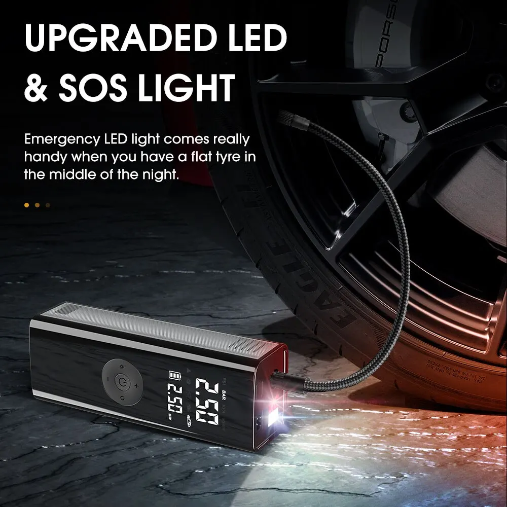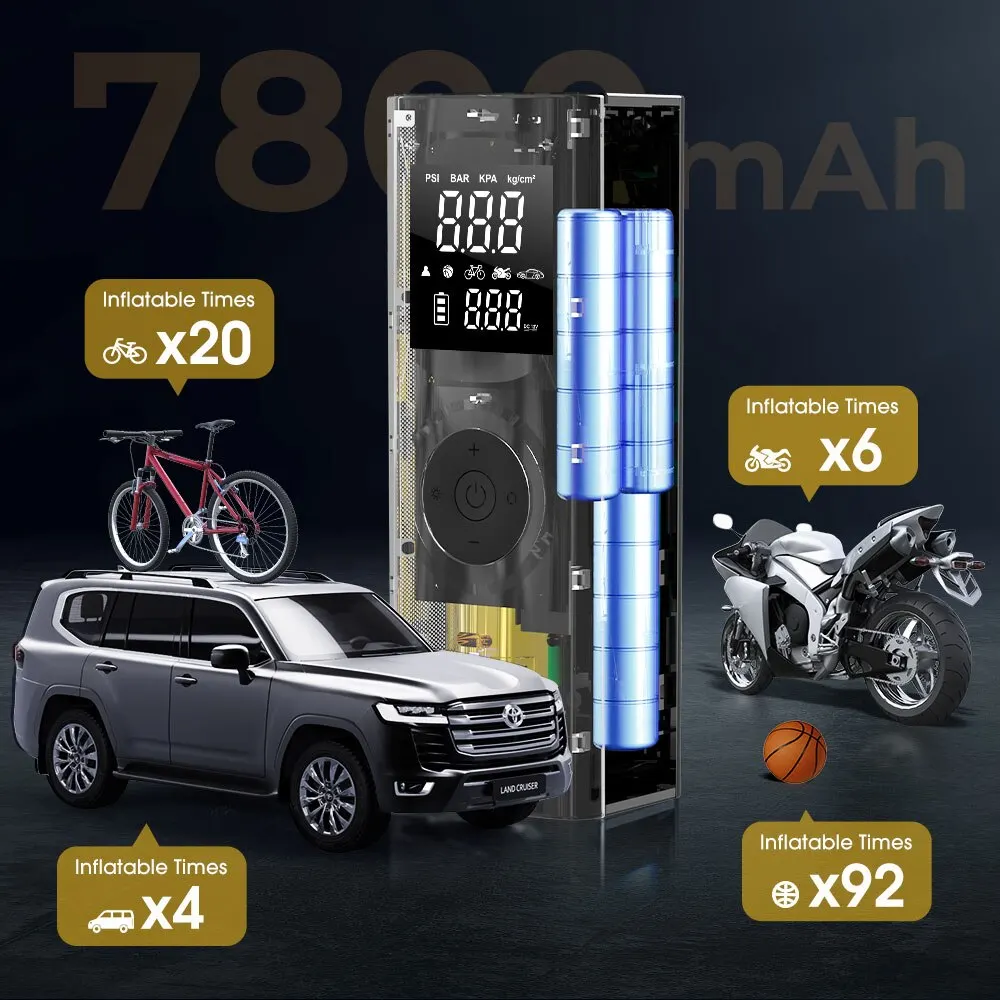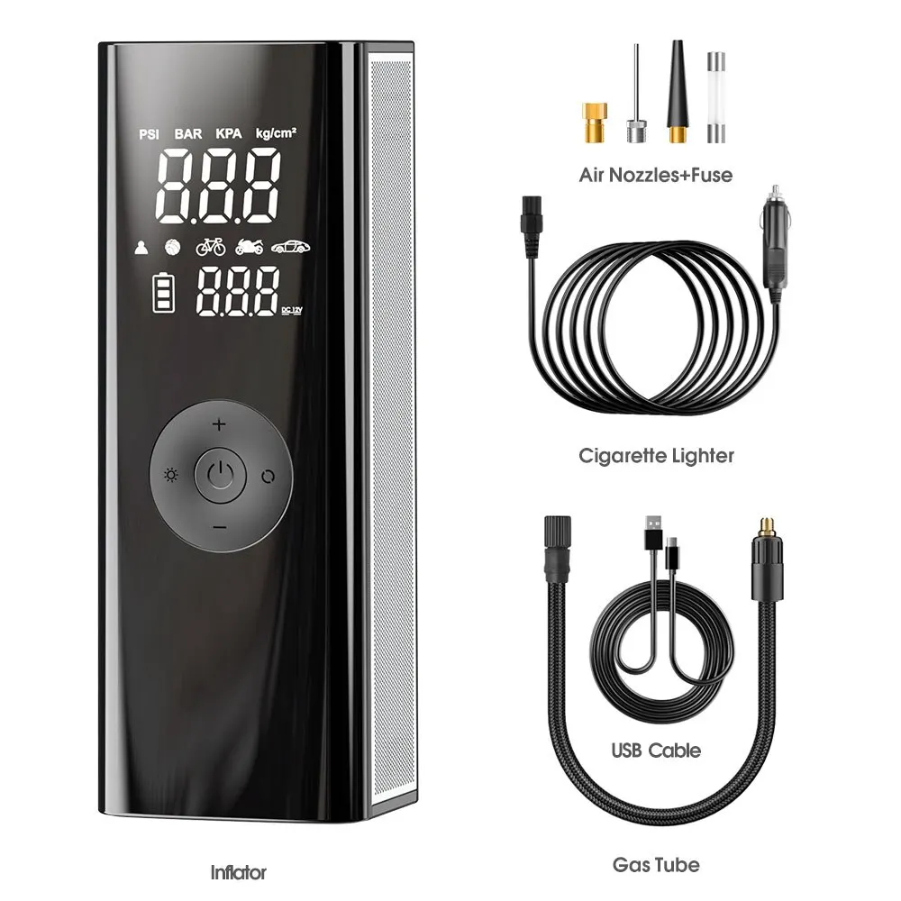 • Batería de alta capacidad :Con una batería de 2600mAh, este inflador puede inflar los neumáticos hasta 150psi sin necesidad de ser enchufado.
