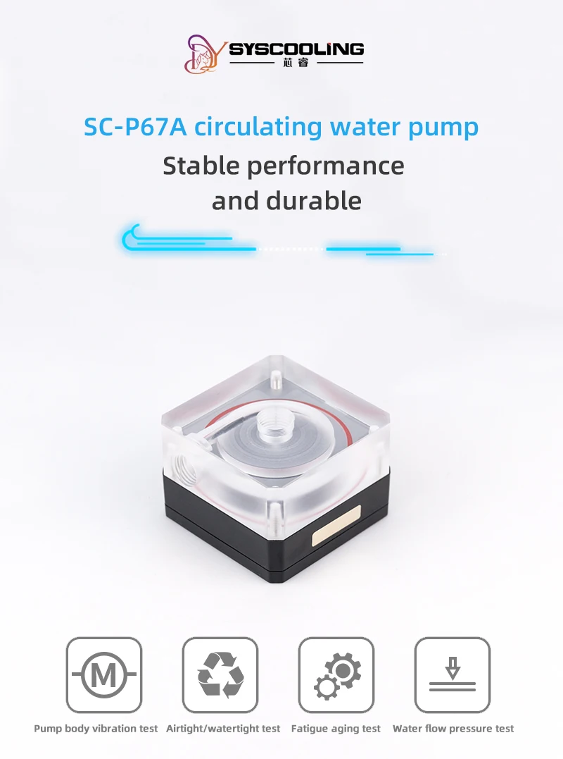Bomba de refrigeración Syscooling P67A DC 12V mini bomba para refrigeración por agua de PC soporte PWM rosca G1/4 parte superior acrílica