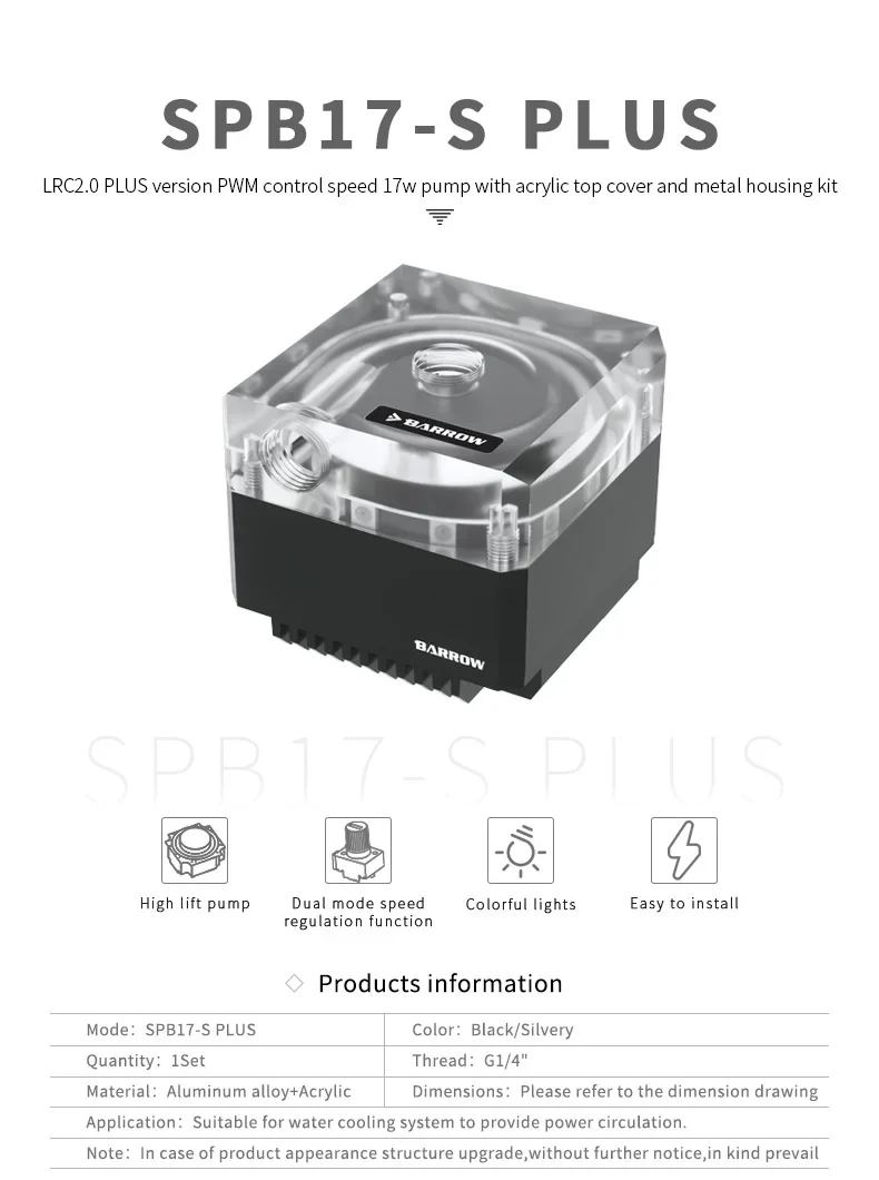 Comprar Bombas para PC Barrow, bomba de refrigeración por agua PWM de 17W con cubierta de radiador de aluminio, 5V ARGB, alta calidad