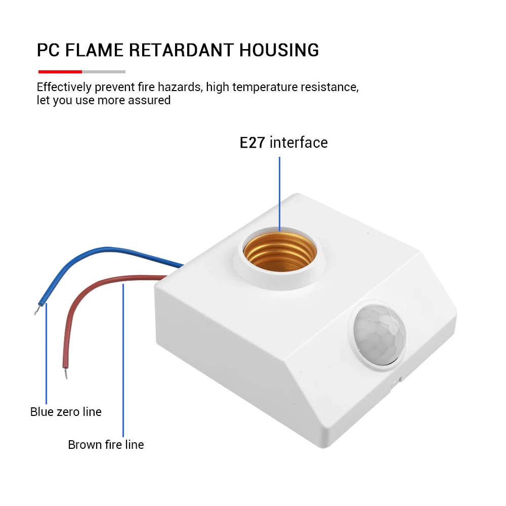 Comprar Bombilla LED E27 Base PIR Detector de movimiento automático cuerpo humano infrarrojo Sensor IR portalámparas soporte de lámpara de pared enchufe
