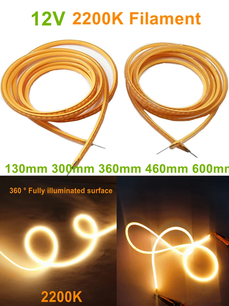 Bombilla LED en espiral de filamento ultradelgado Flexible, 12V, 600mm, filamento de 2200K, piezas de lámpara de bombilla Edison Retro, decoración de tira de luz de diodo