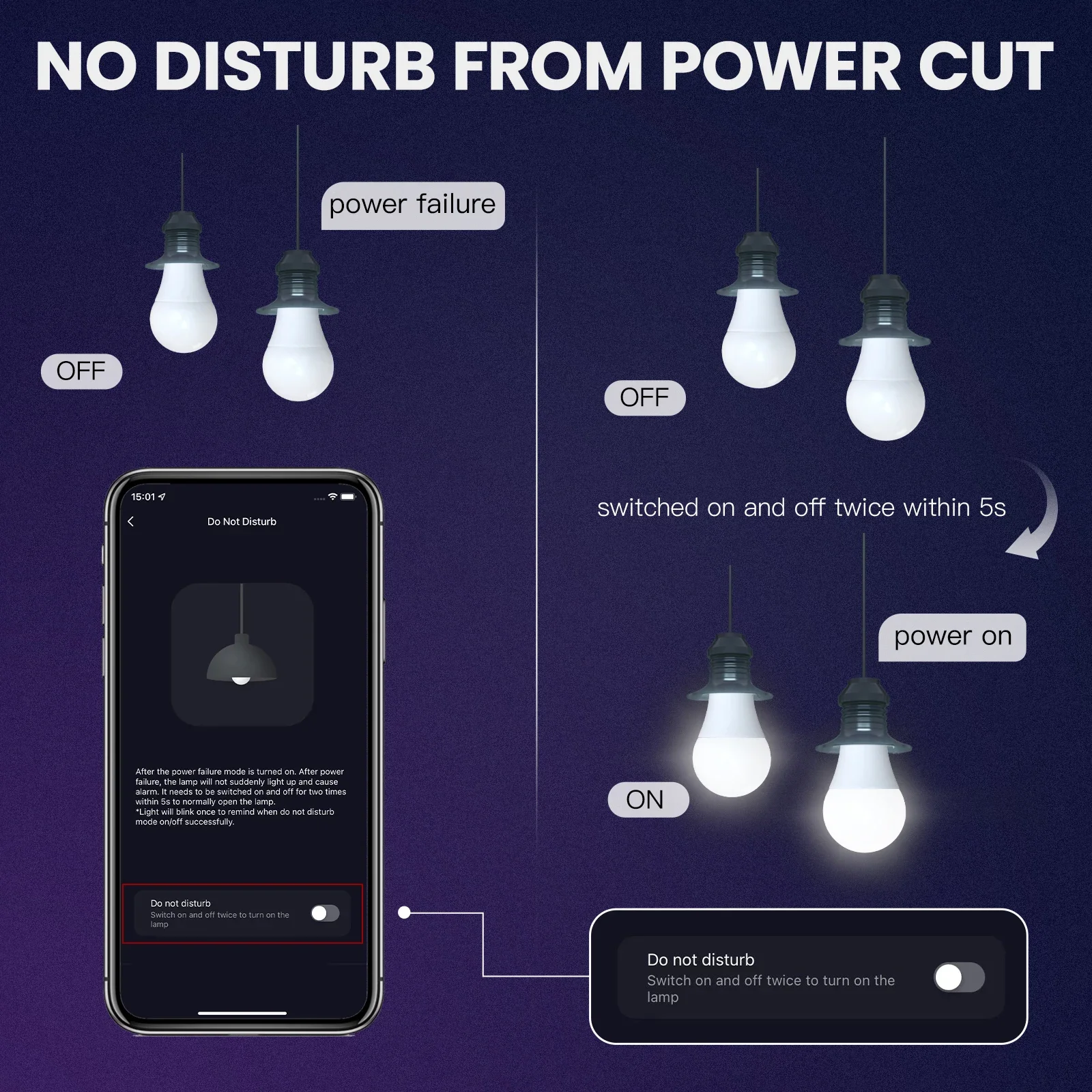 Con el modo "no molestar", cuando se corta la energía y se recupera después de un tiempo, la luz no se encenderá automáticamente a menos que se presione el botón dos veces en 5 segundos.