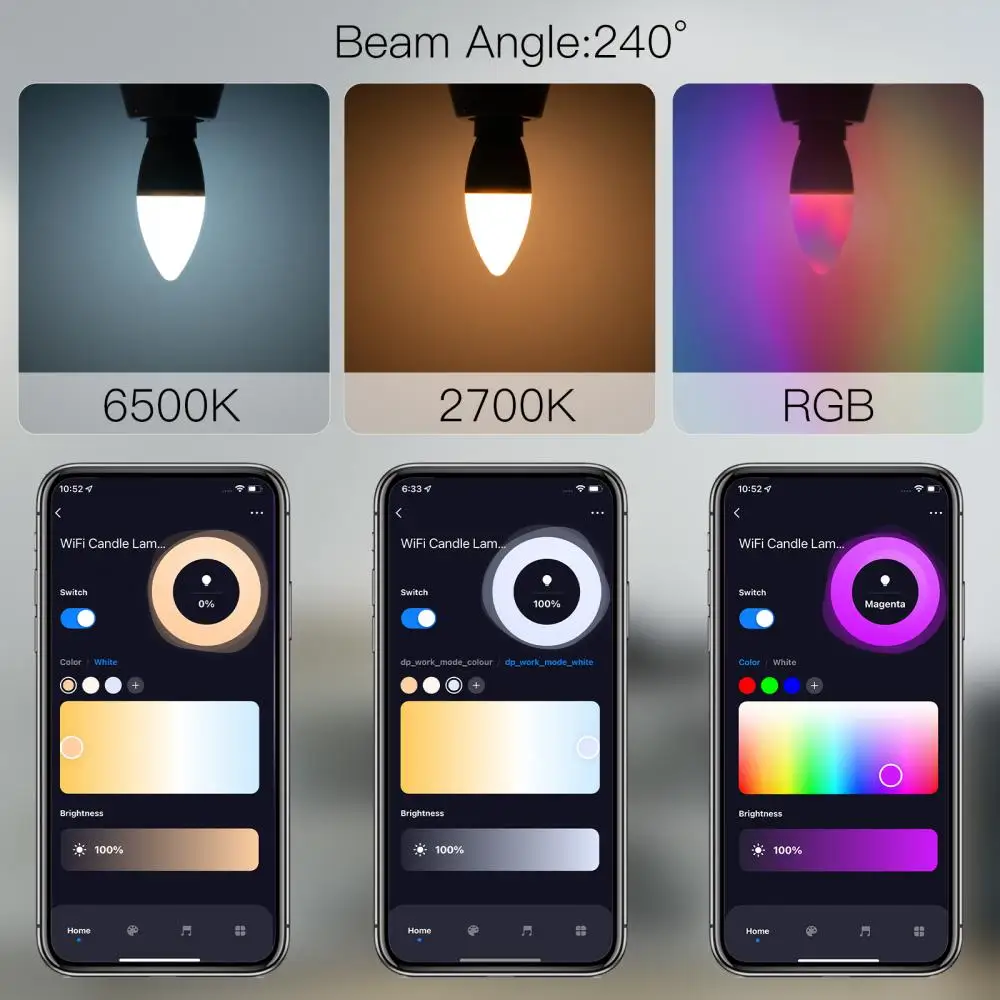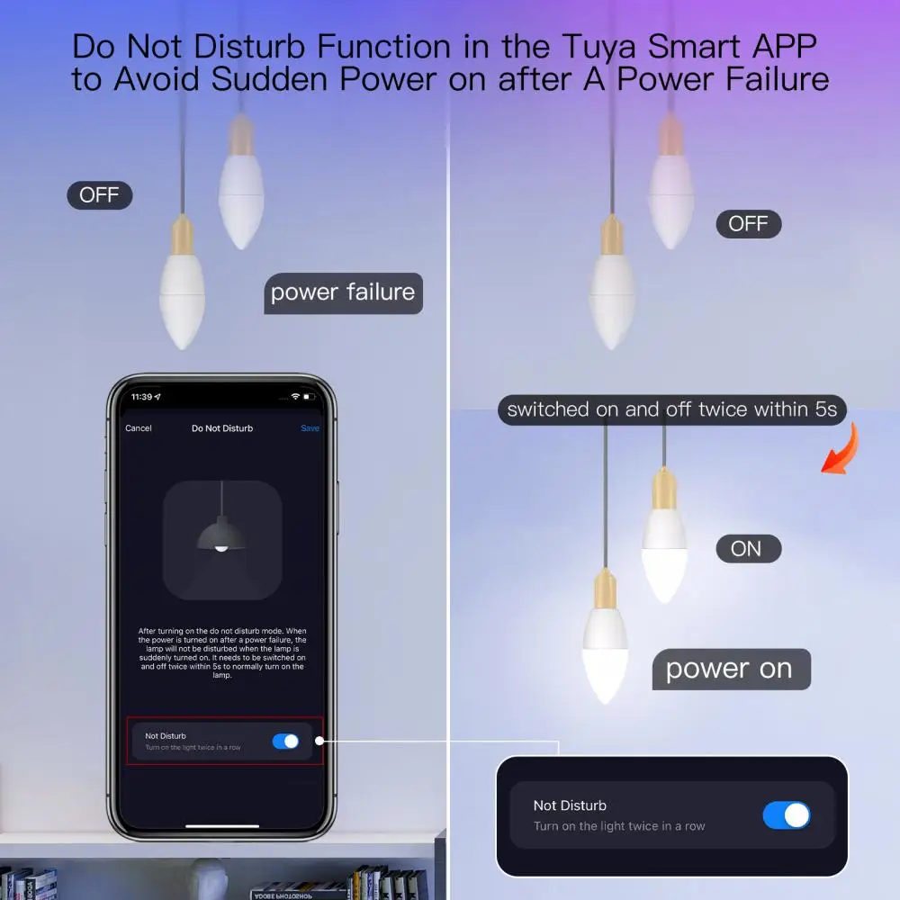 【WiFi】Nuestras bombillas inteligentes E14 son compatibles con Alexa Echo / Google Home/Yandex Alice. Puede controlar sus bombillas a través de WiFi. -Utilice los controles de la aplicación Tuya/Smart Life.