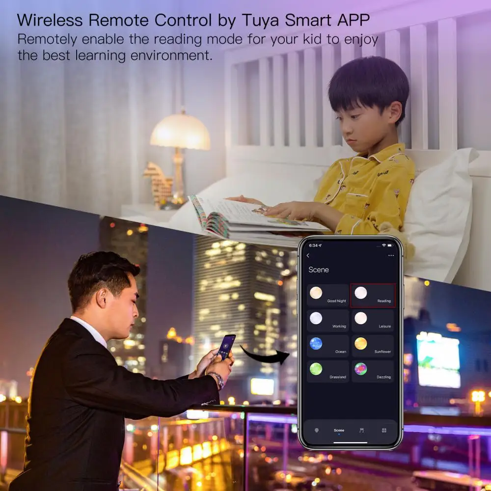 【Sincronización de escena y música】La escena predeterminada de la aplicación cambia, también puede editar su propia escena y personalizar el cambio de color. Hay sincronización de música, puede abrir la aplicación de música en su teléfono móvil y la aplicación Smart Life captura automáticamente los cambios de ritmo, para realizar los cambios de ritmo de la luz y la música.