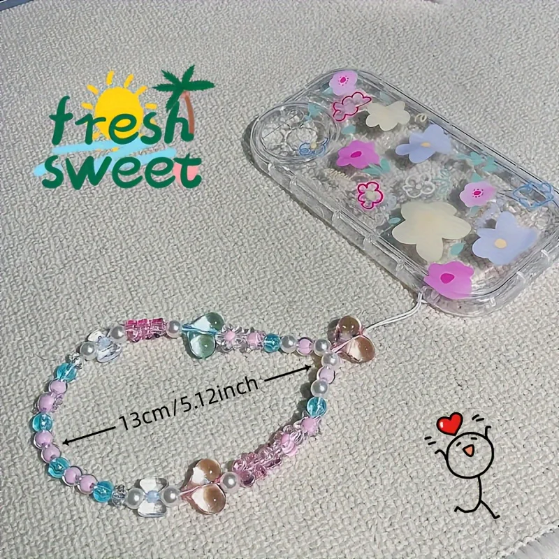 Cute Pink Love Heart Bowkont Beads Phone Chain Sweet Bear Hanging Rope Camera Lanyard Anti-lost Wrist Straps Bag Accessories