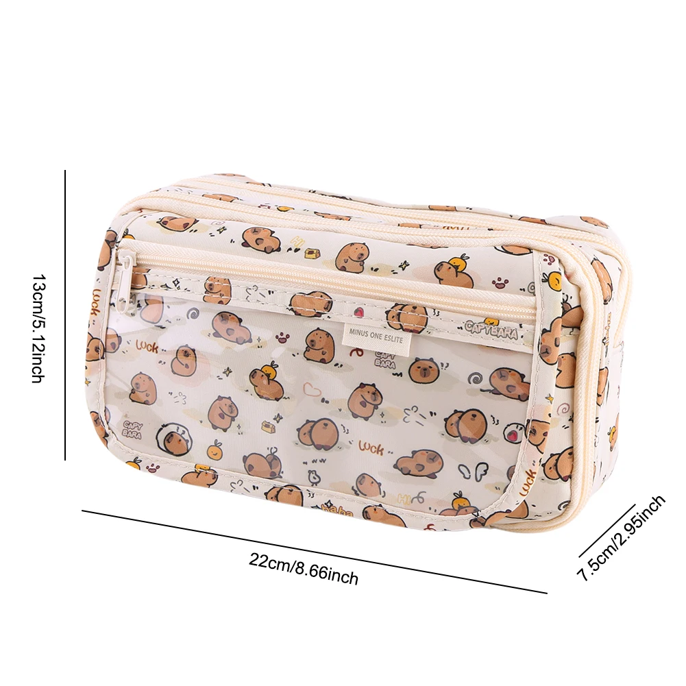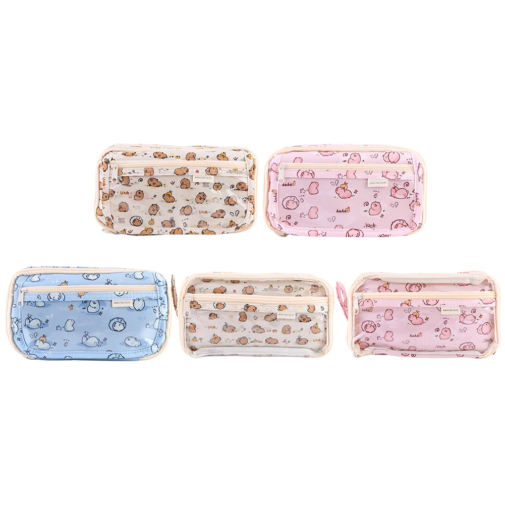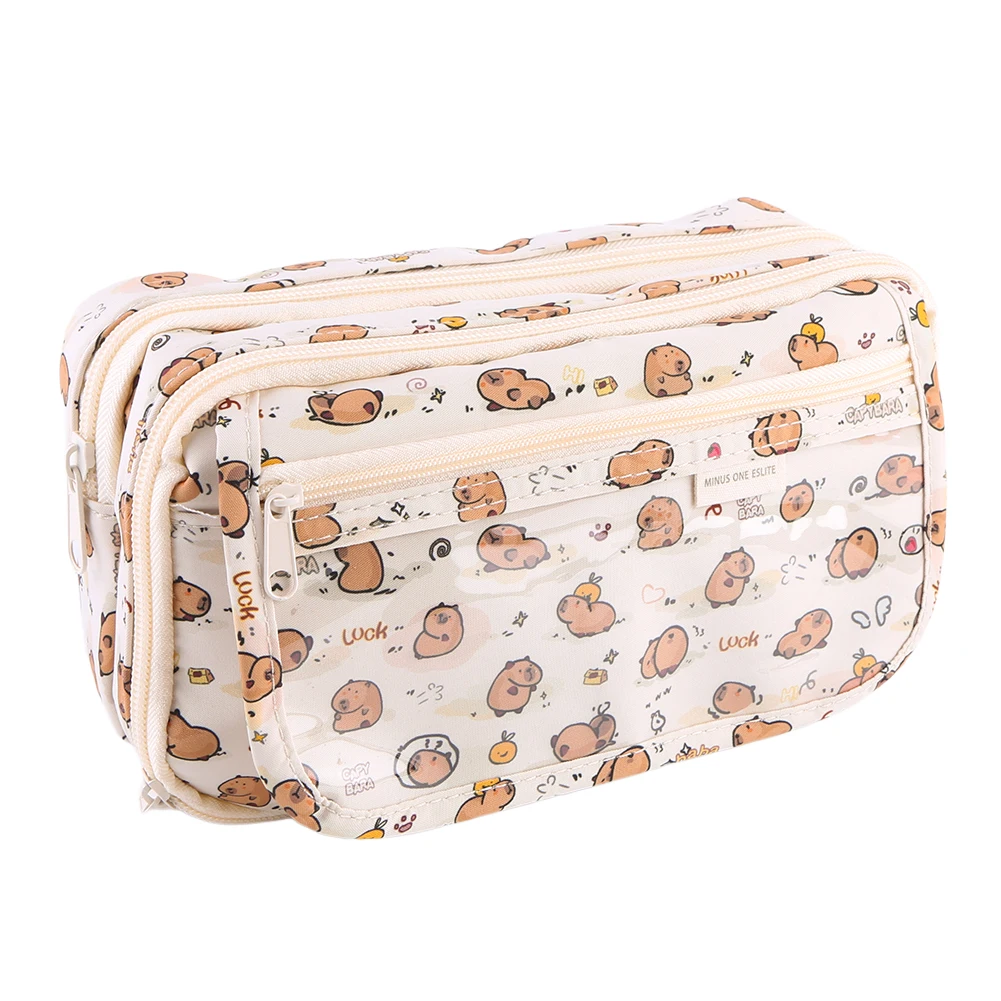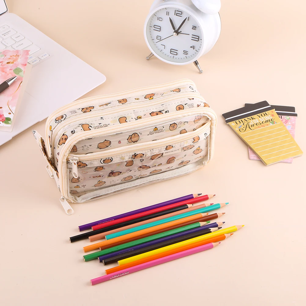 Estuche de lápices Kapibala para niñas, caja de lápices Kawaii de gran capacidad con cremallera, bolsa de papelería, bolsa transparente para bolígrafos, suministros escolares y de oficina