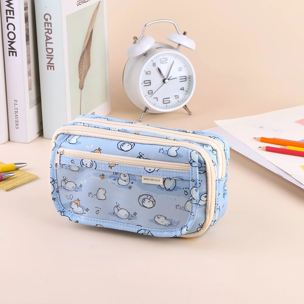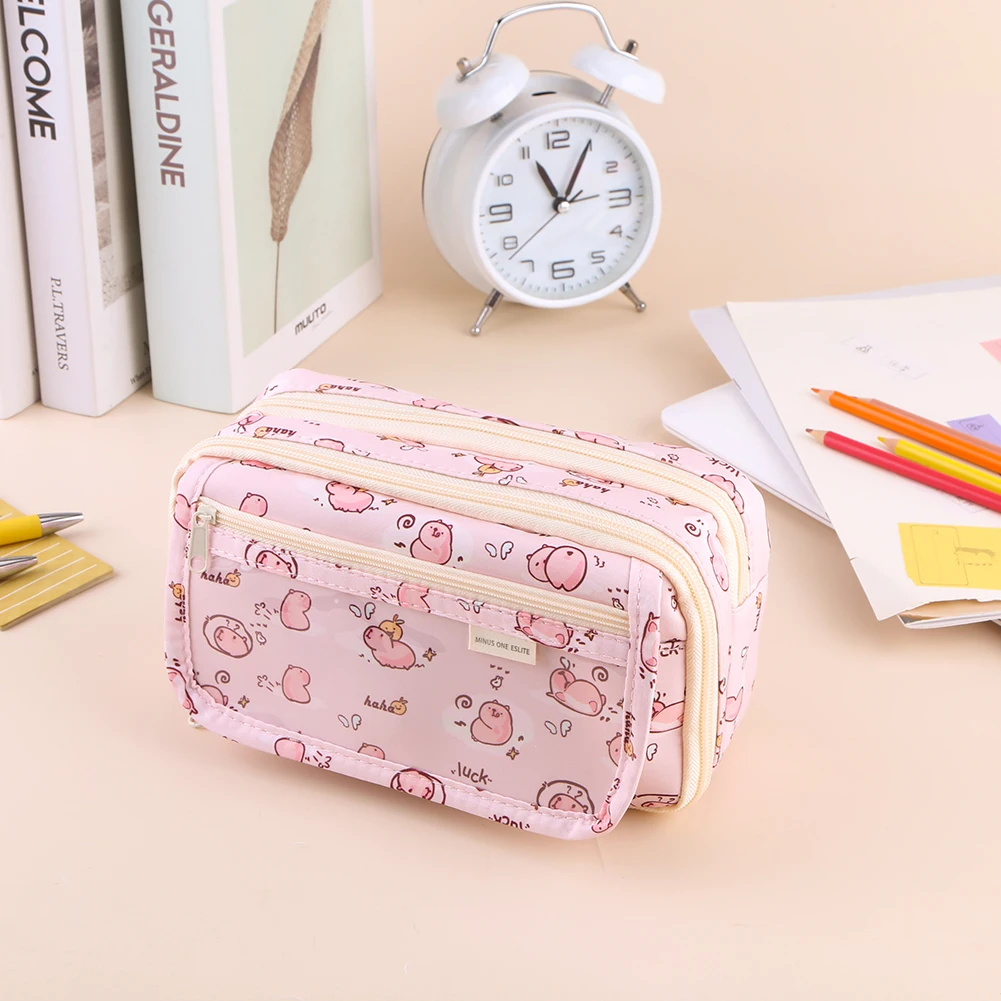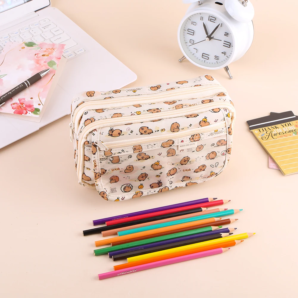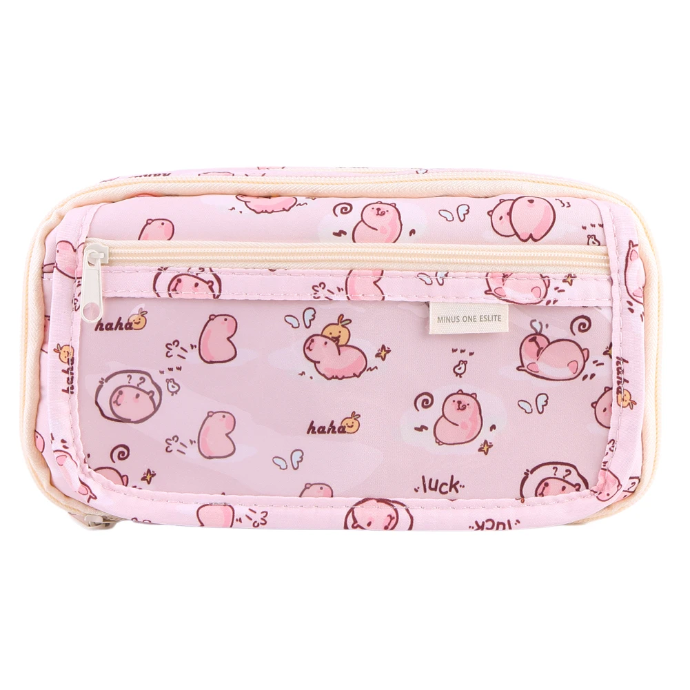 Estuche de lápices Kapibala para niñas, caja de lápices Kawaii de gran capacidad con cremallera, bolsa de papelería, bolsa transparente para bolígrafos, suministros escolares y de oficina