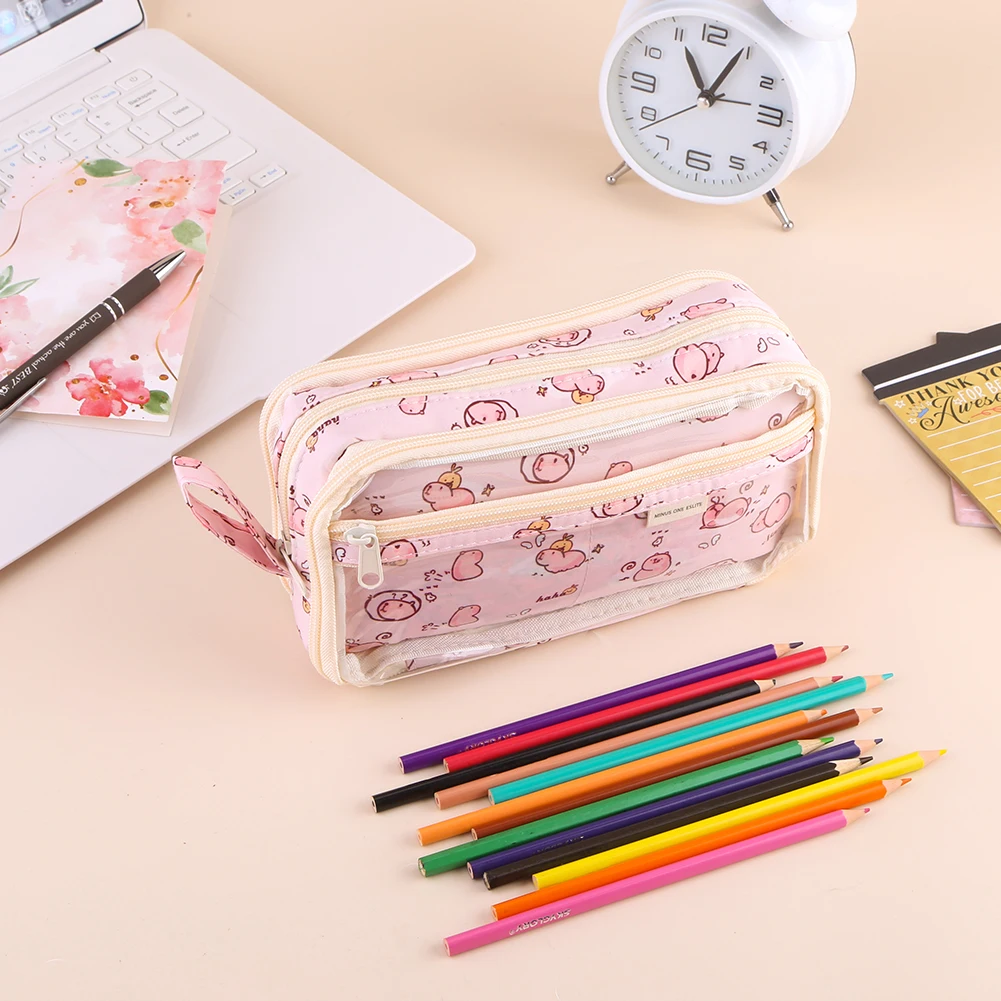 Comprar Bonita caja de lápices Kawaii para niñas, bolsa de lápices de gran capacidad, organizador de escritorio transparente, bolsa para bolígrafos, suministros de oficina escolar