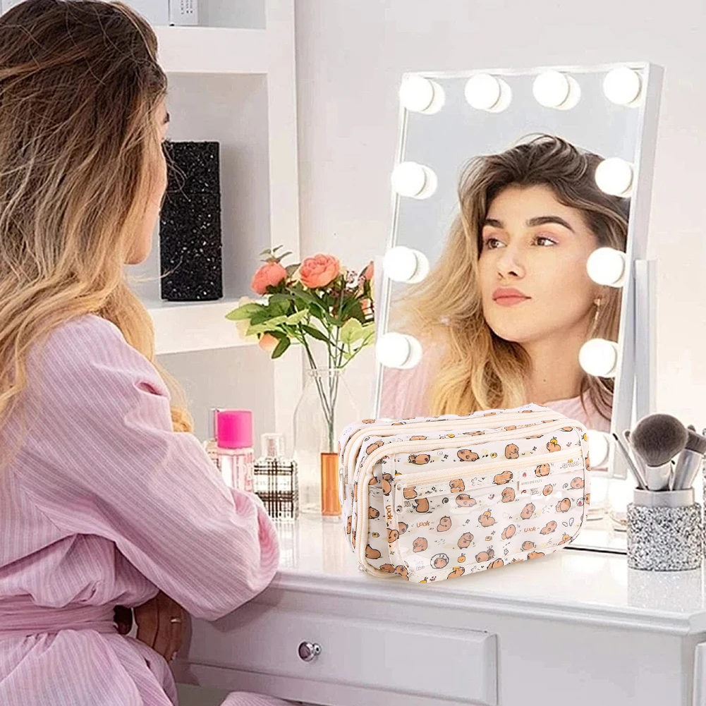 4. Versátil para varias ocasiones:Ya sea que esté de viaje, de vacaciones, en una reunión de negocios, yendo al gimnasio, acampando u organizando su baño, esta bolsa para lápices sirve no solo como una simple bolsa con cremallera, sino también como una funcional bolsa de maquillaje y organizador de viaje.