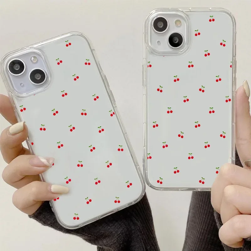 Comprar Bonita cereza Kawaii fruta fresca funda de teléfono transparente para iPhone 16 15 Pro Max 11 12 13 14 15 Pro XS XR7 8 Plus carcasa a prueba de golpes