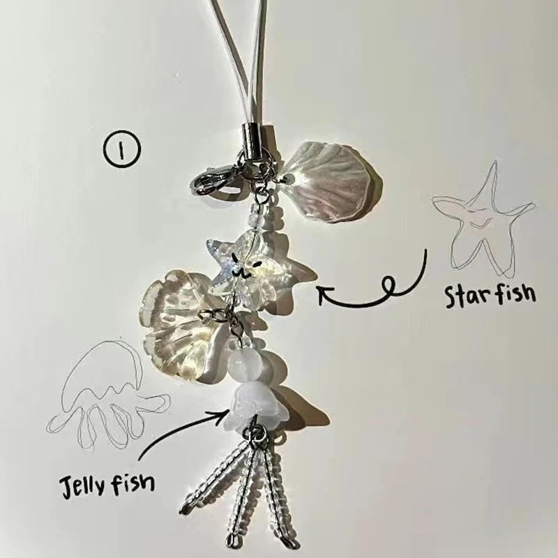Comprar Bonita correa con dije para teléfono, estilo océano de verano, conchas marinas, colgante de pez gelatina, cordón para llaves, bolso para chica y mujer, llavero
