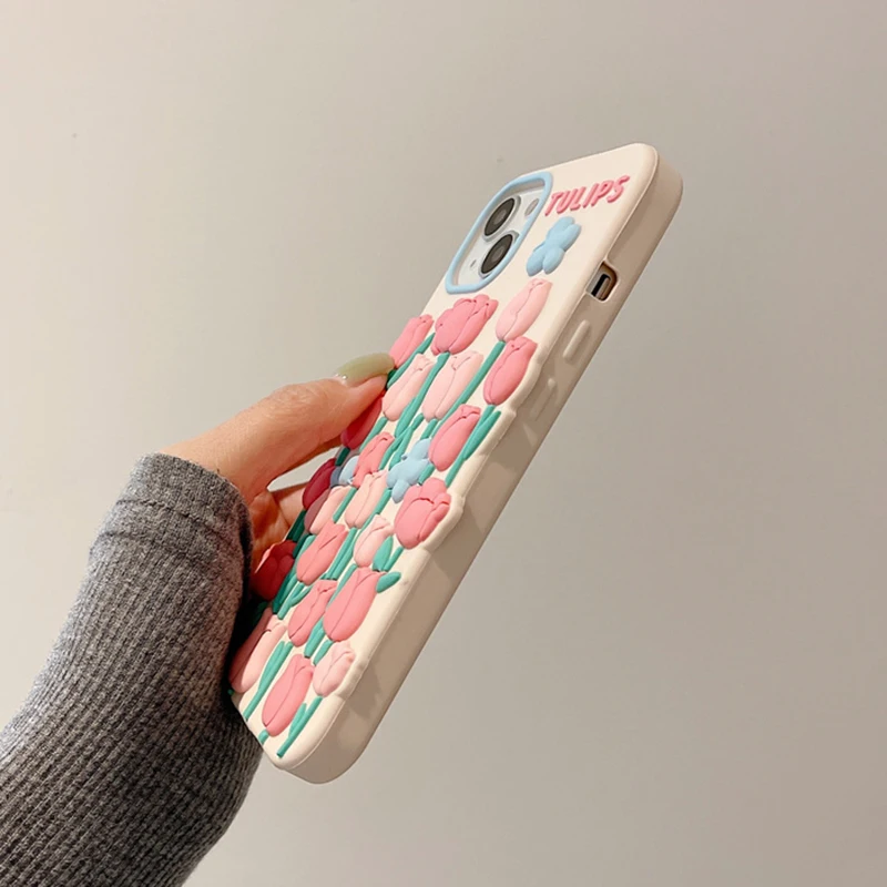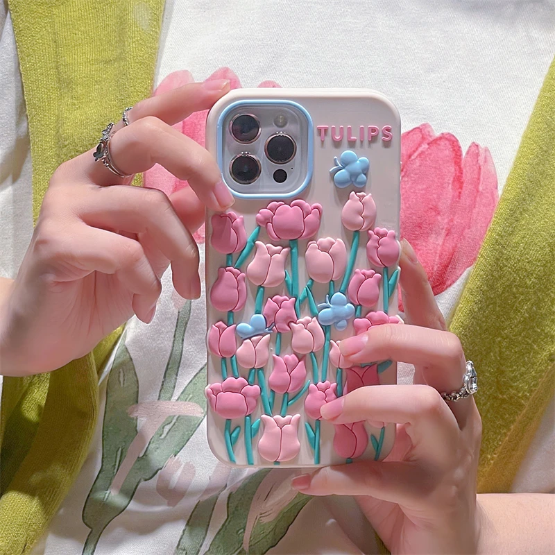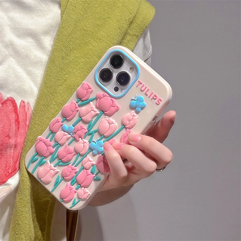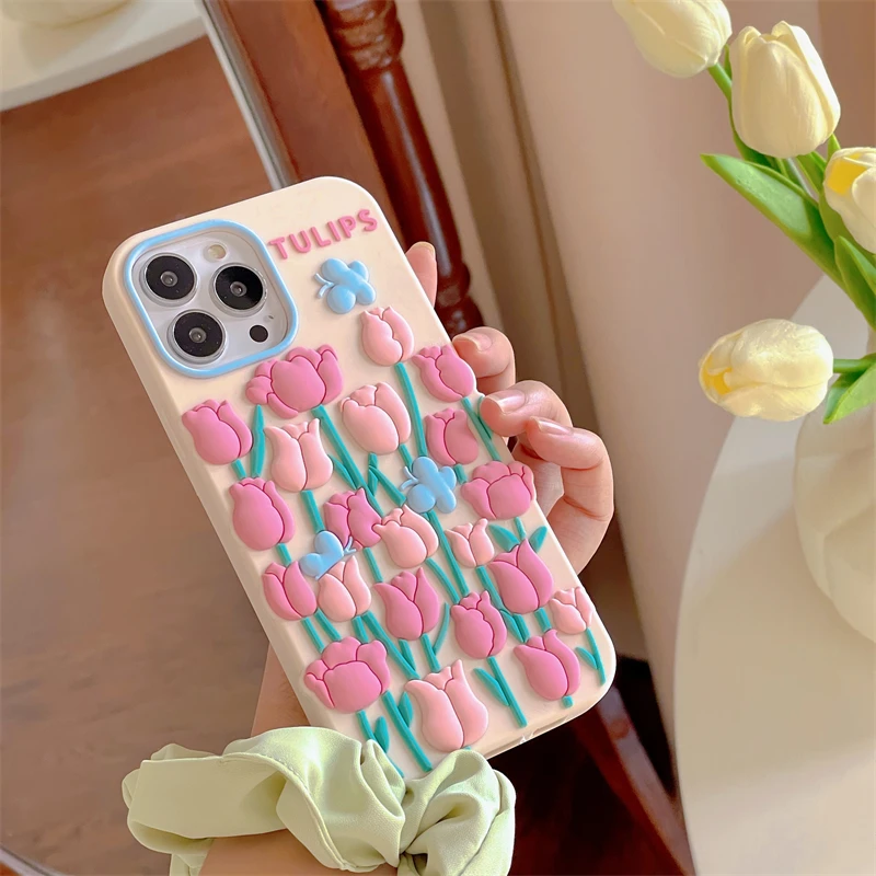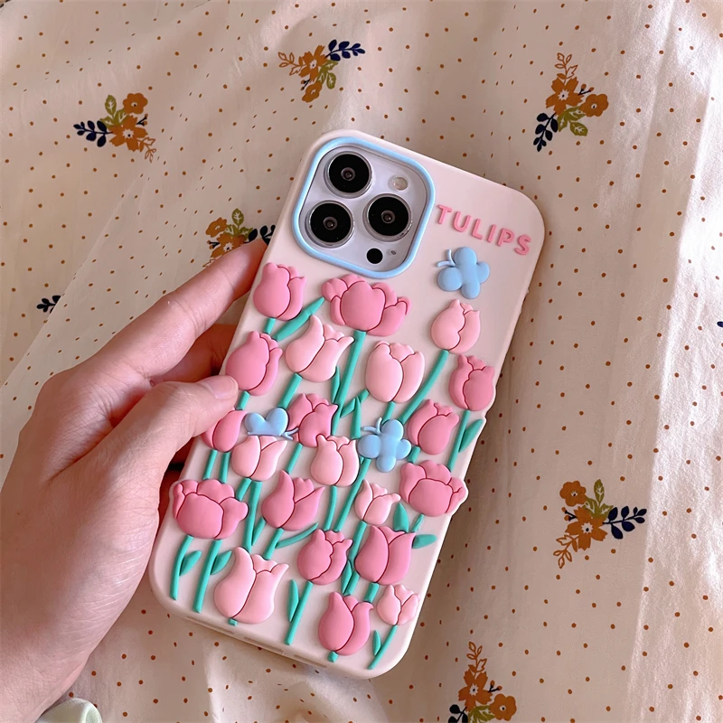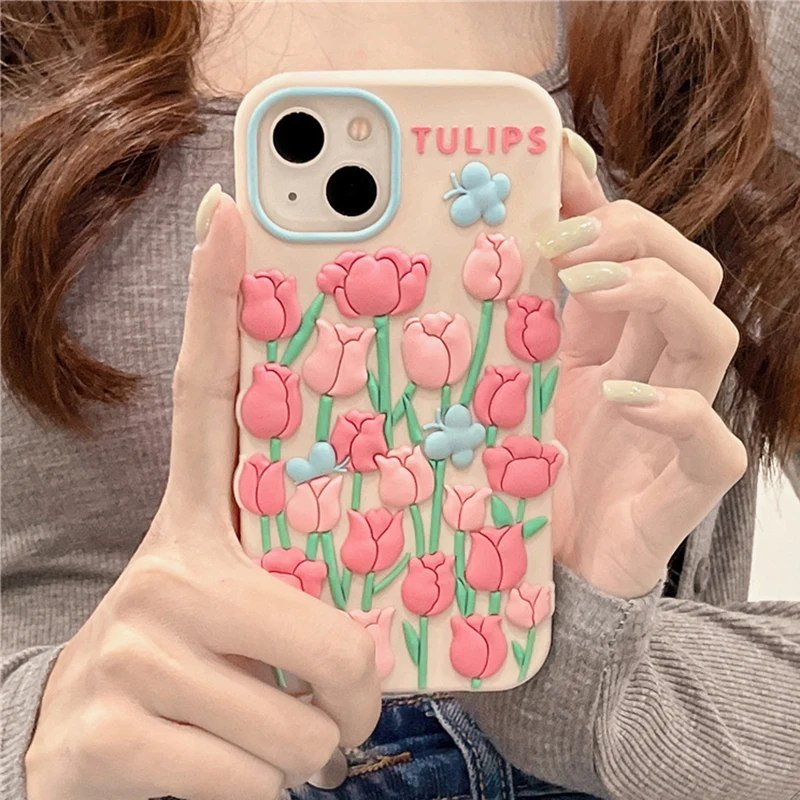 Bonita funda 3D de mariposa con flor de tulipán para iPhone 13 12 11 14 Pro Max XS X XR 7 8 14 Plus SE 3 2, funda trasera de silicona suave para teléfono