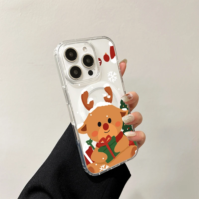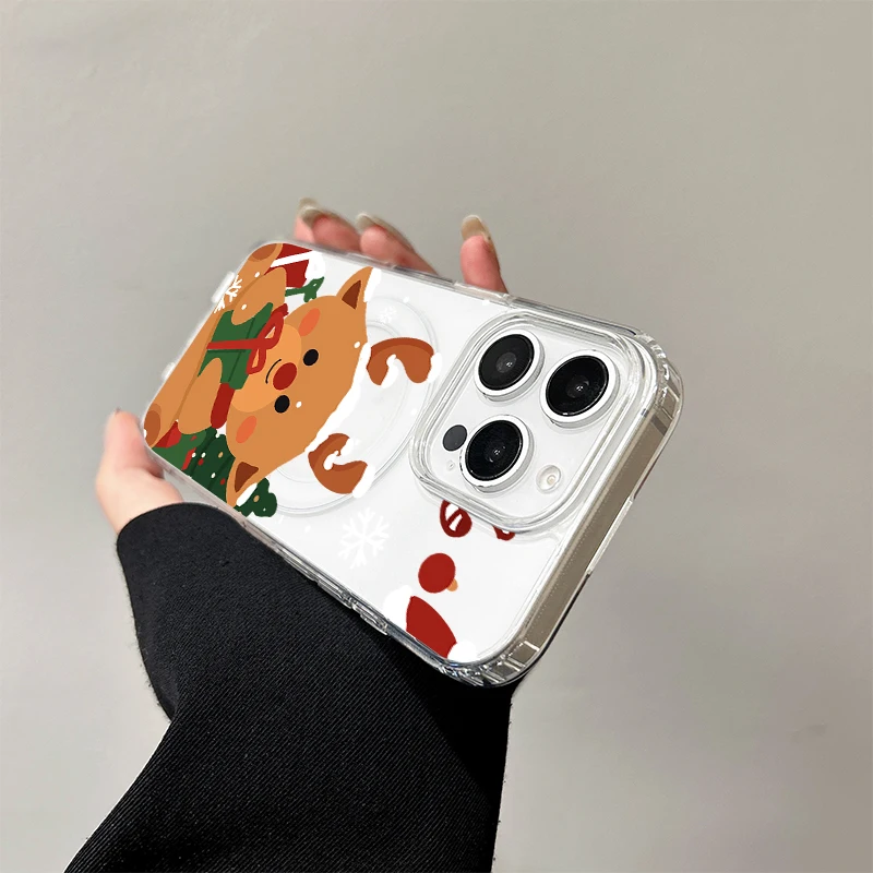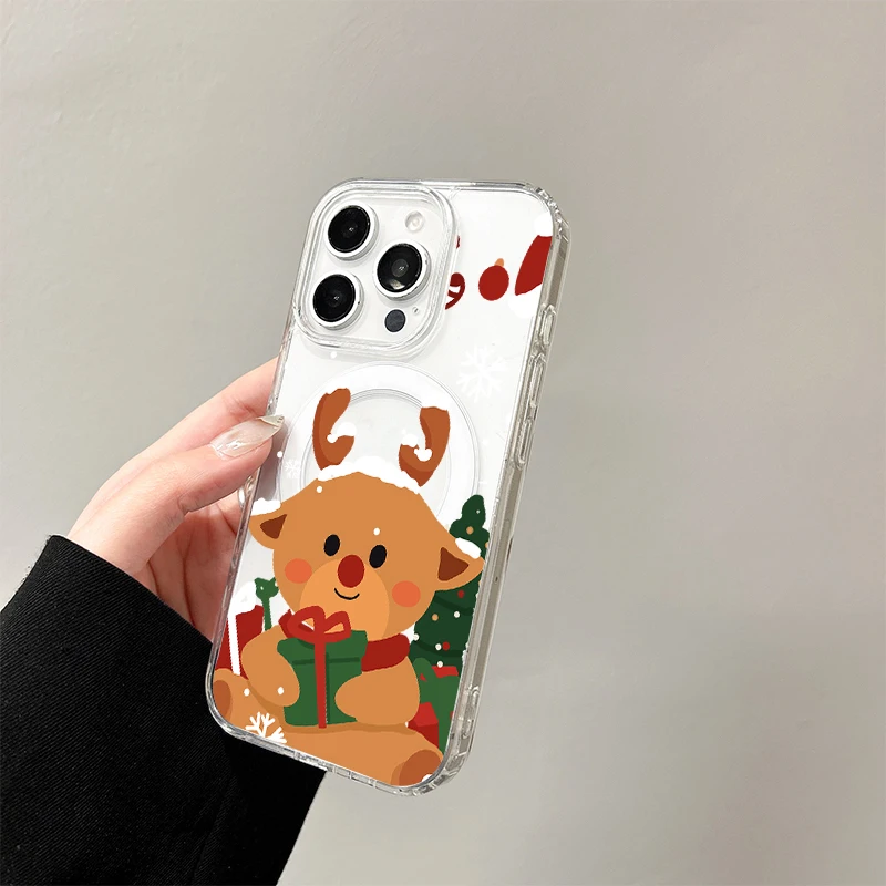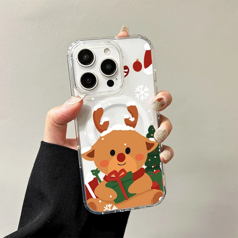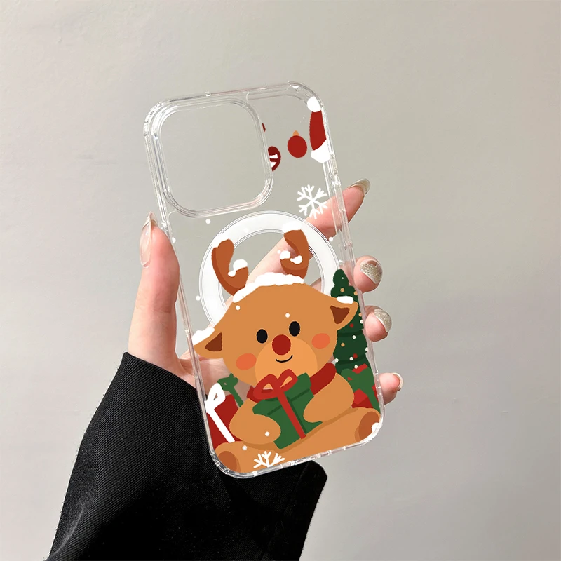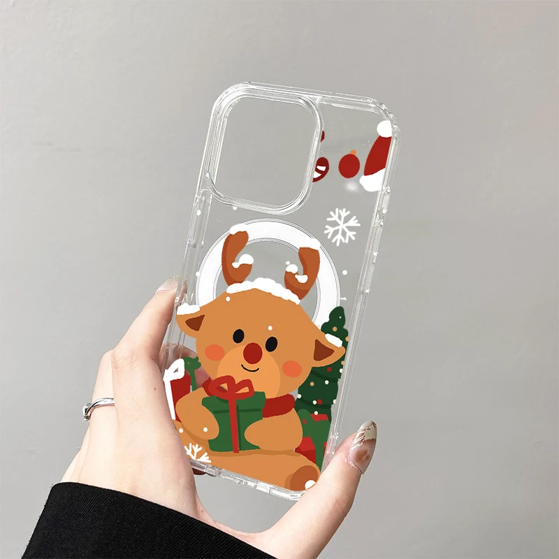 Bonita funda de carga inalámbrica de Papá Noel para iPhone 17 Air 16 E 15 14 Plus 13 12 Mini 11 Pro Max cubierta de borde de silicona transparente