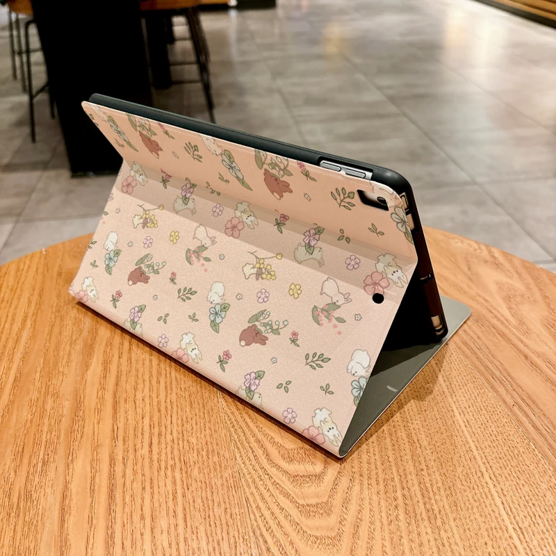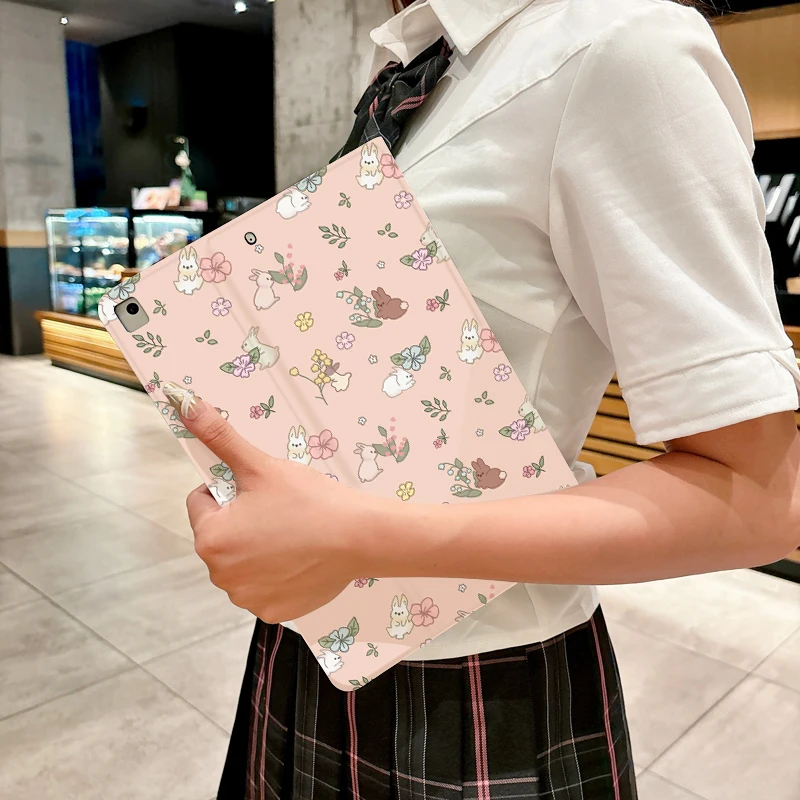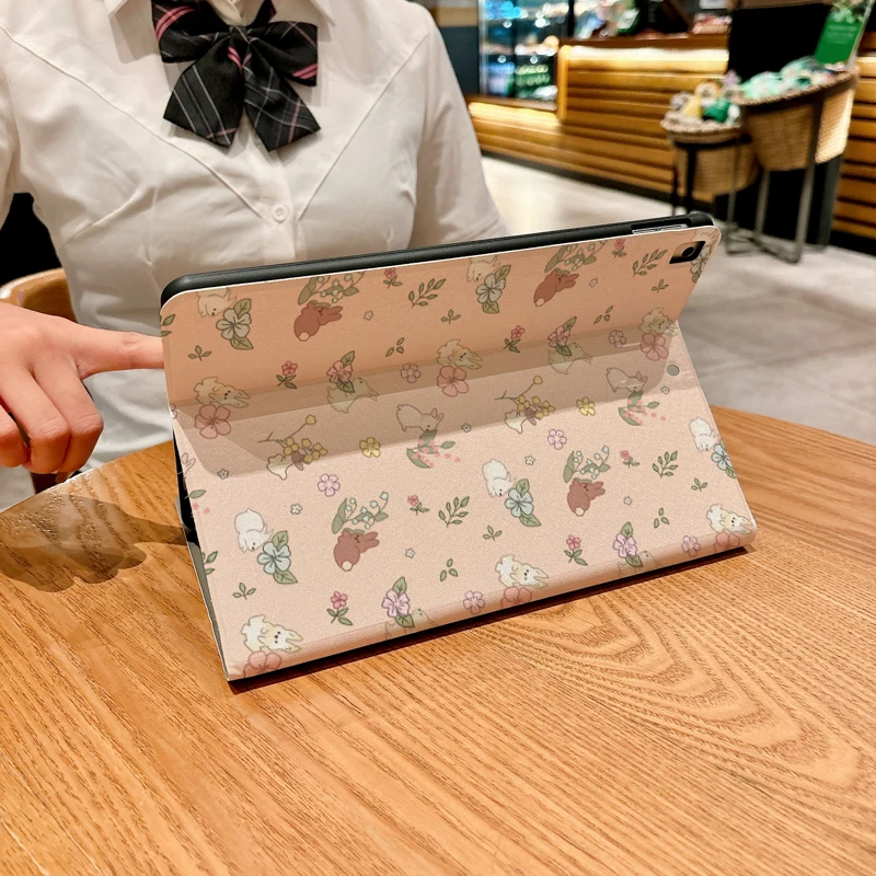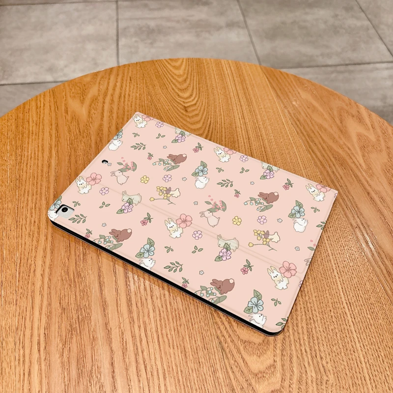Bonita funda de conejo con flores rosas para iPad pro 10/11 pulgadas 2020/6/7th /8th /Air 3rd/Air 4th/9th gen/Air 5th Gen 2022/Air 11