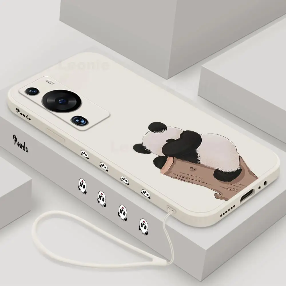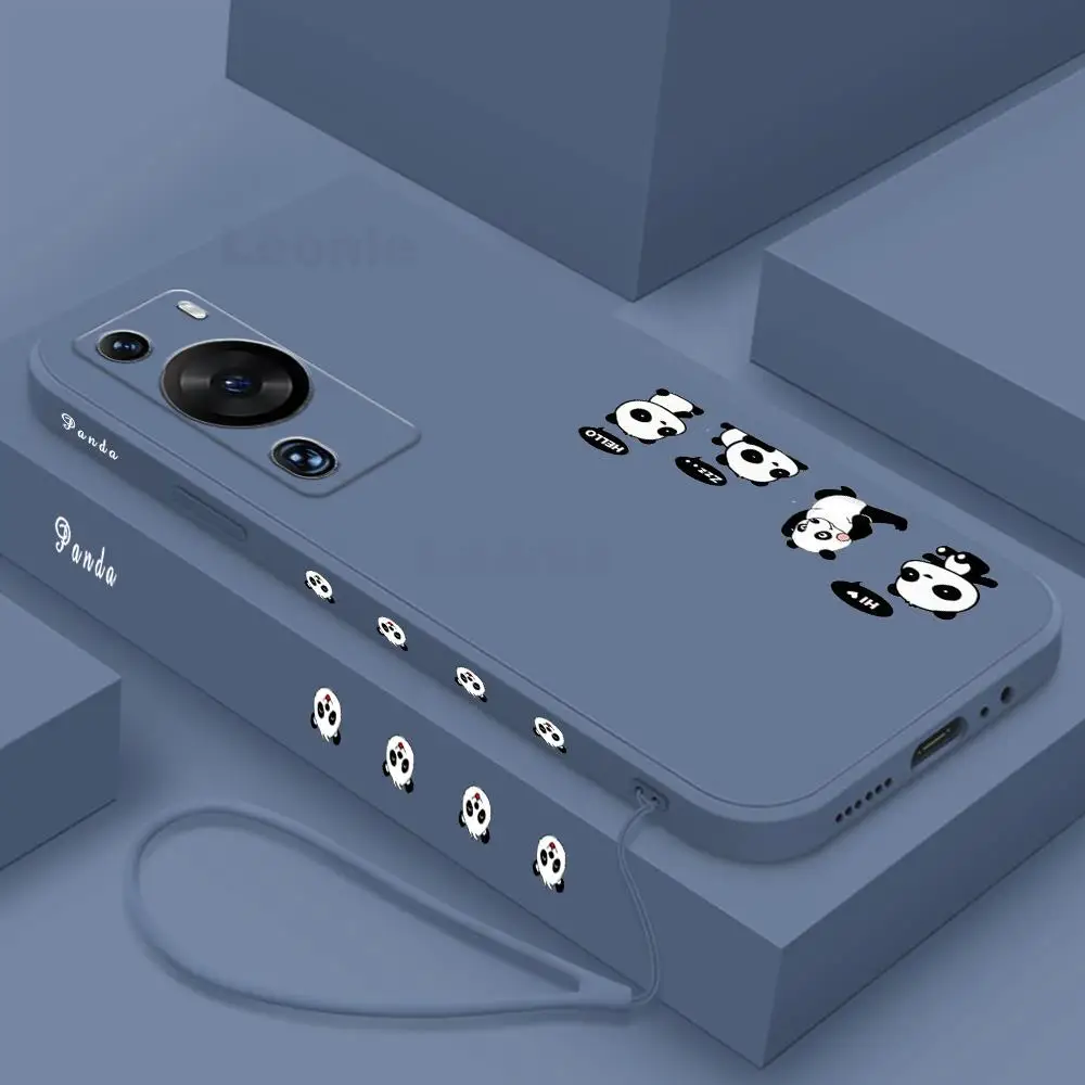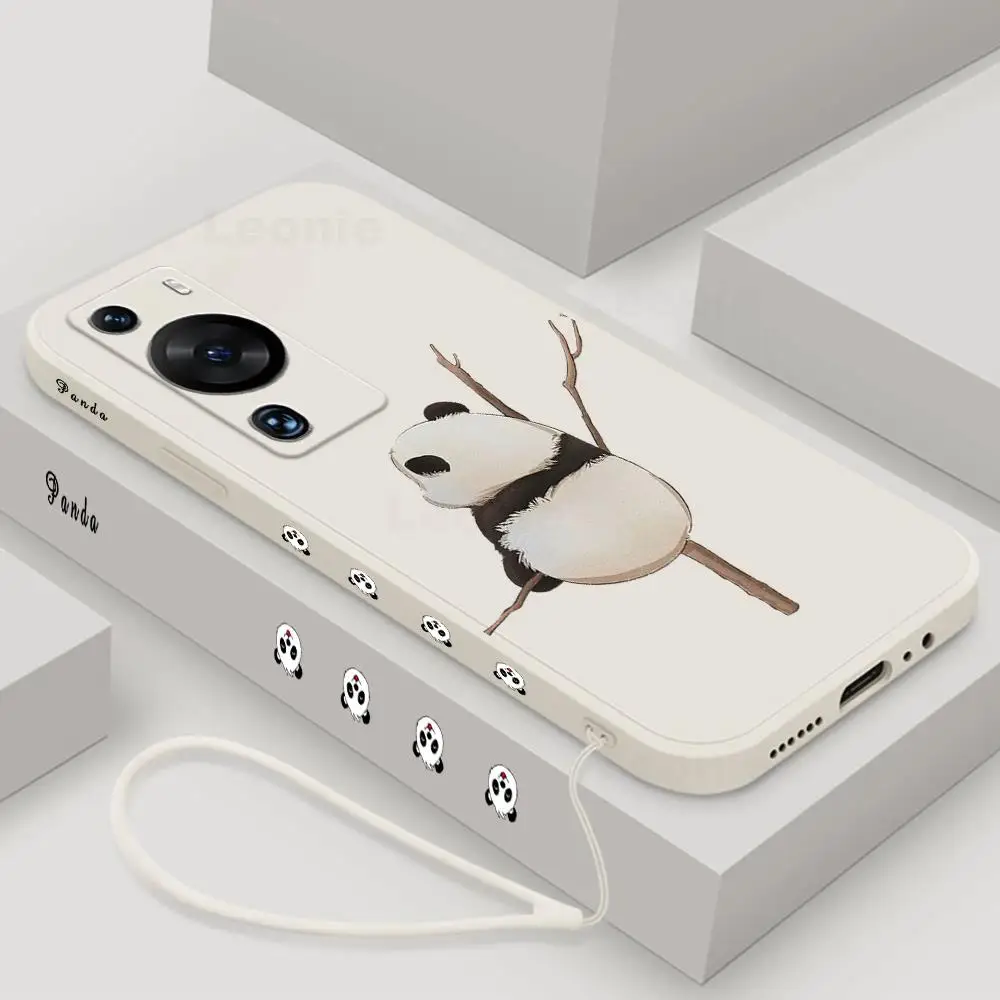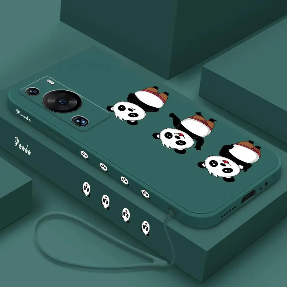 Funda de Panda para Huawei P60 Pro Art 5g Honor 90 70 80 Pro GT 60 SE, funda de teléfono de silicona líquida con cordón