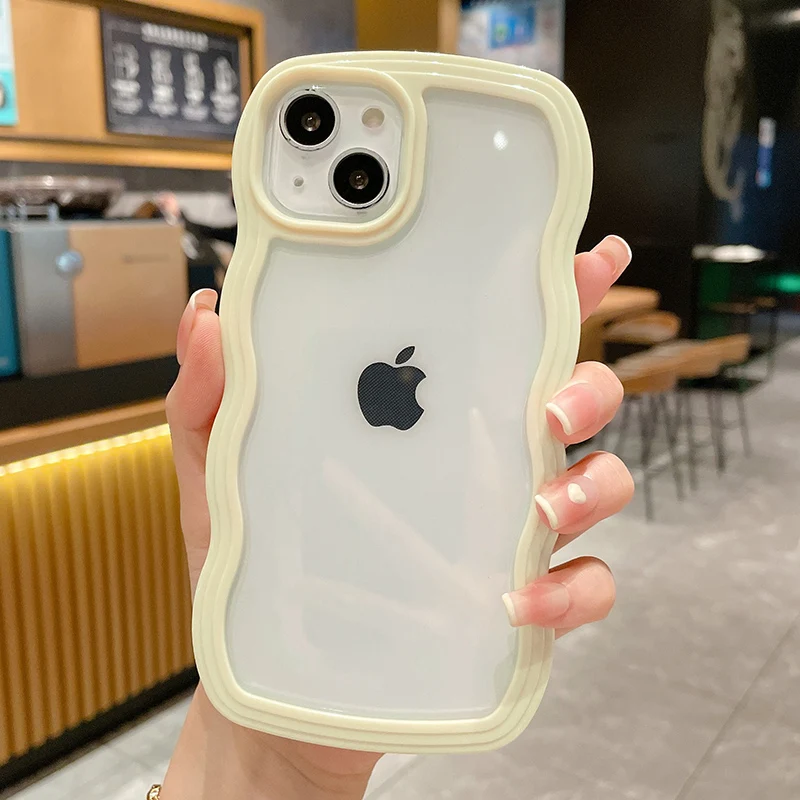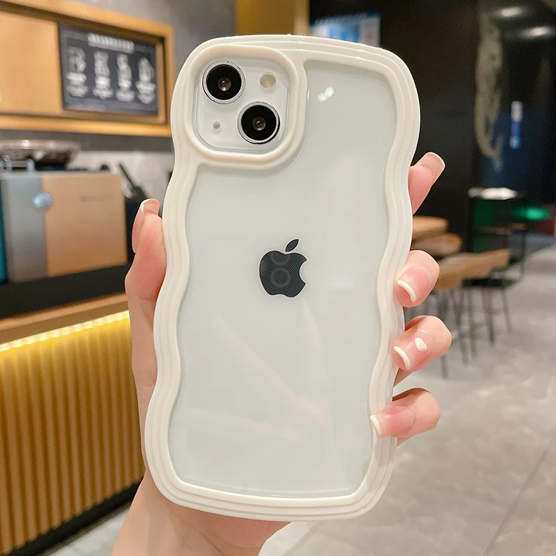 Funda de parachoques transparente con ondas rizadas para iPhone 13 11 12 14 Plus 15 16 17 Air Pro Max XS XR X, funda estética suave y transparente a prueba de golpes