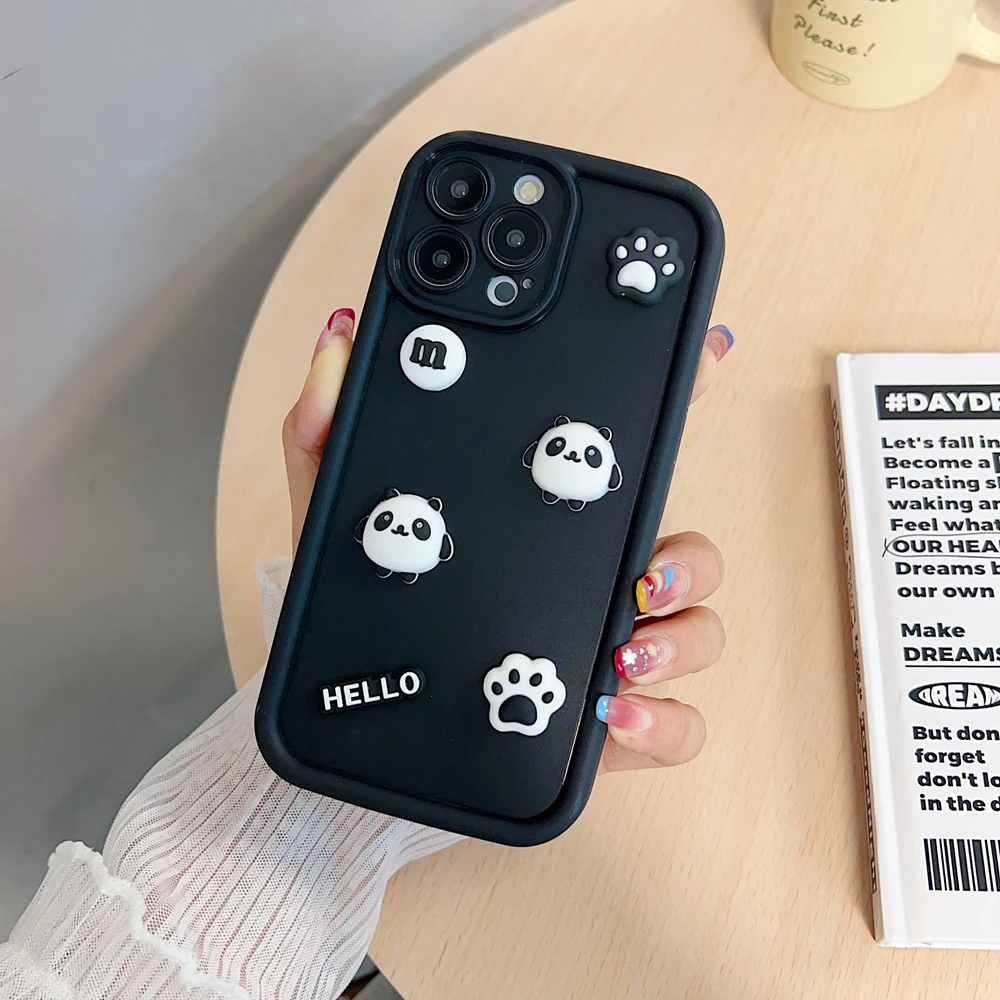 Lindo Panda funda de silicona para iPhone 15 14 13 12 11 Pro XS Max Mini XR X 8 7 6 6S Plus SE 2020 cubierta de lente de cámara suave