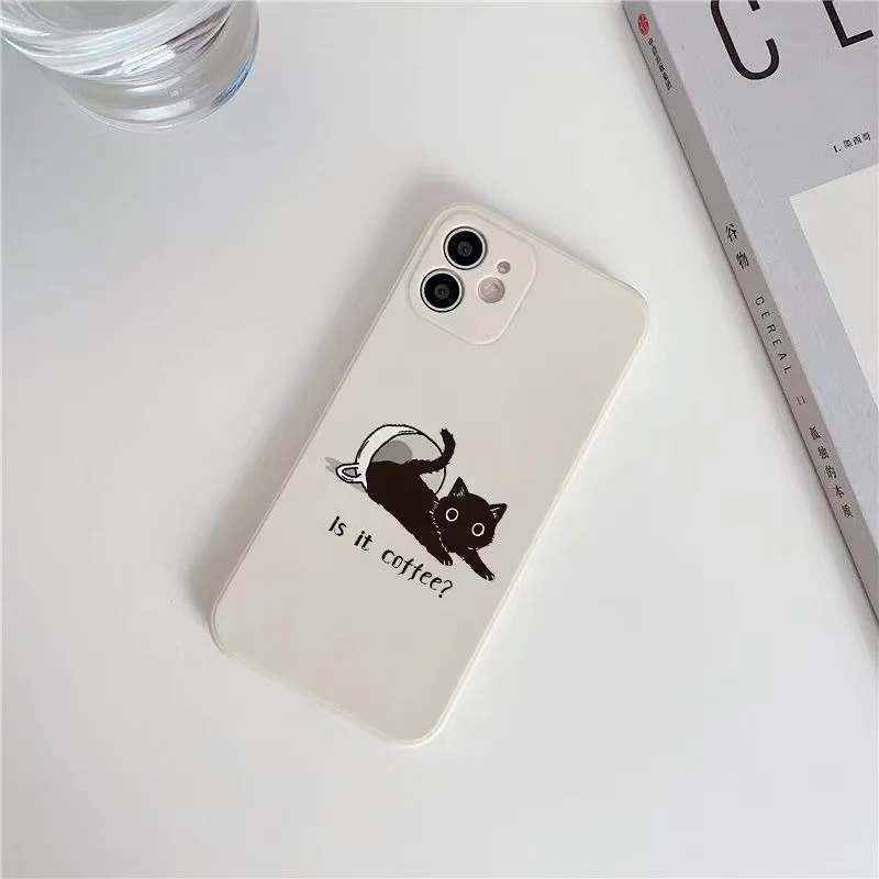 Bonitos gatos de dibujos animados y funda de café para Samsung Galaxy A14 A34 A54 A15 A05 A05S funda de silicona suave