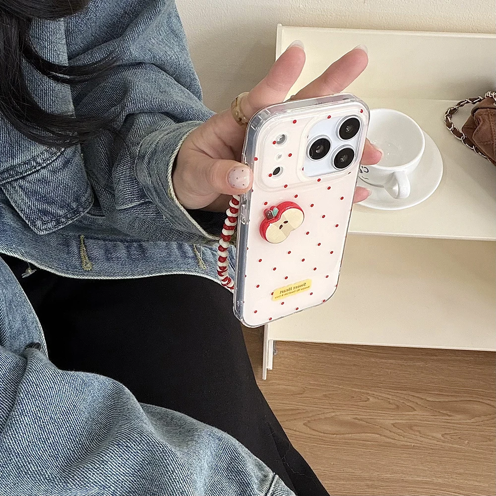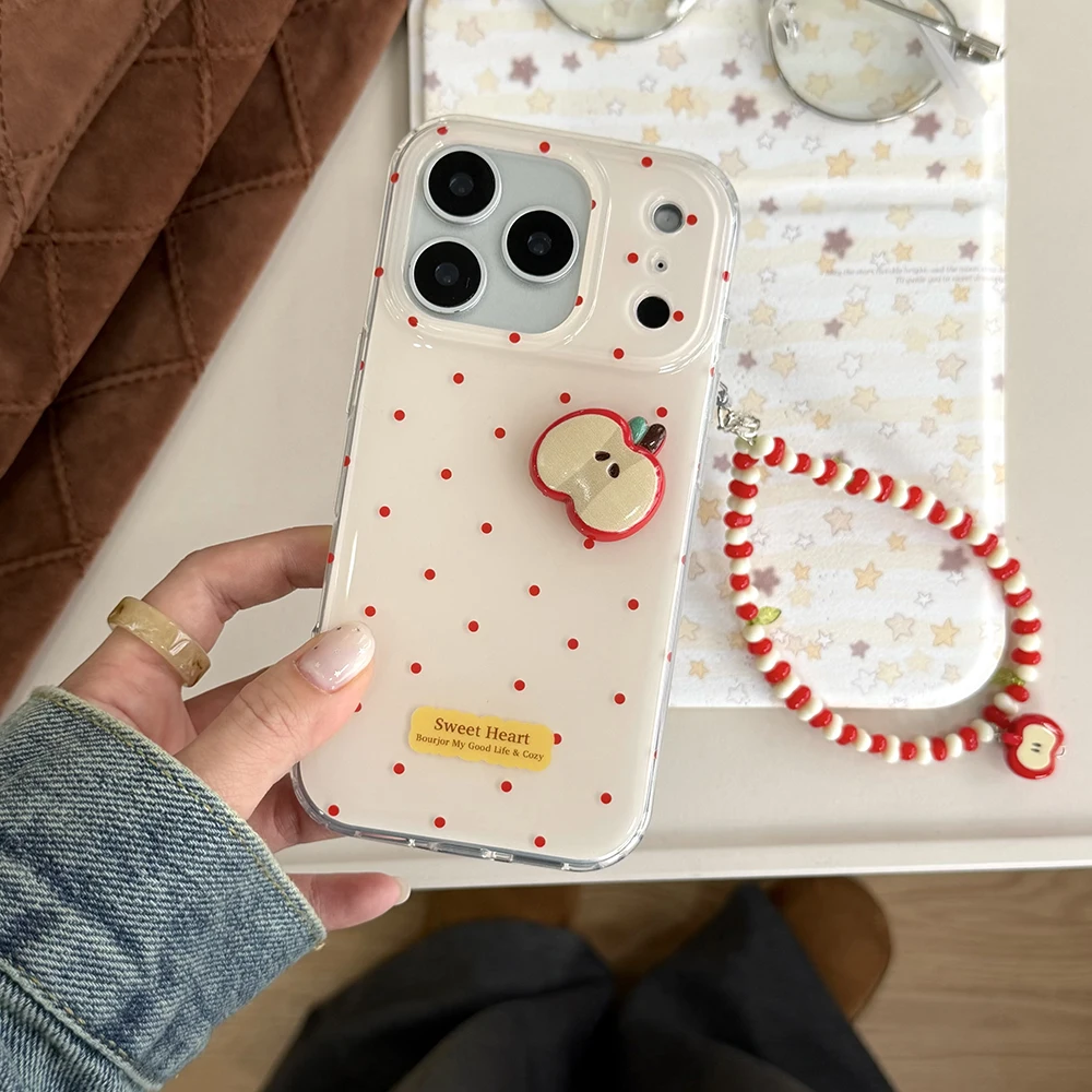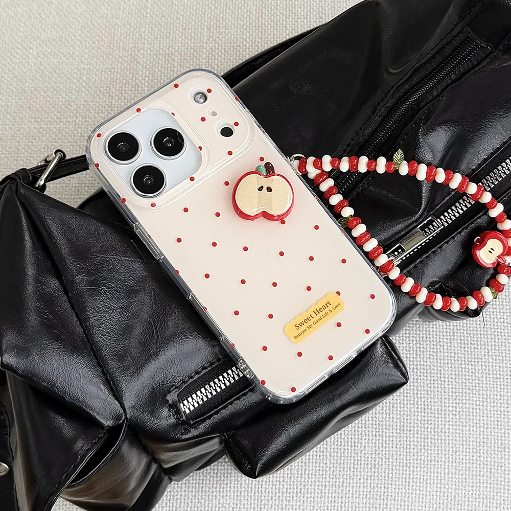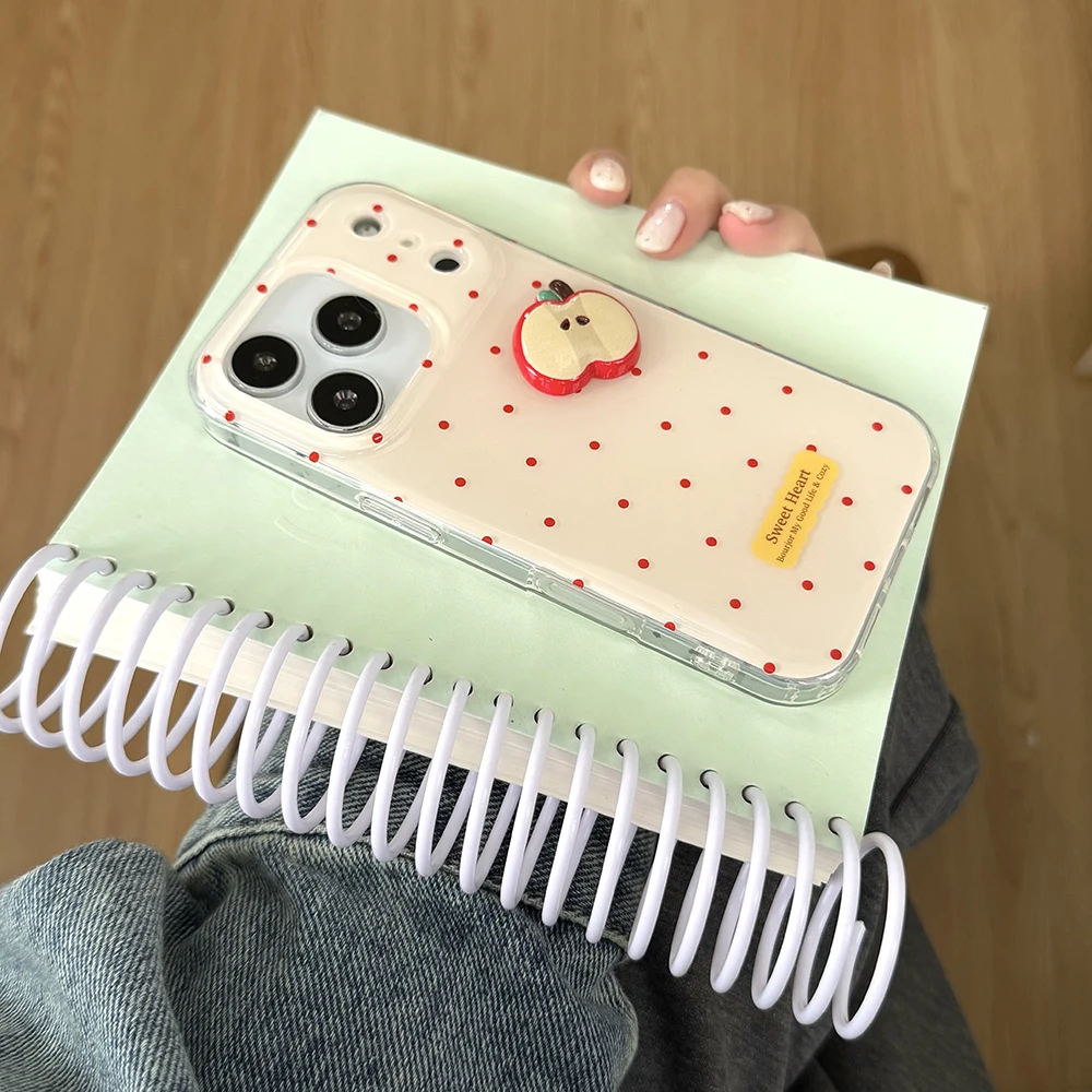 Funda de teléfono bonita 3D con rodajas de Apple y lunares rojos para iPhone 13 14 16 15 17 17pro 17Pro Max, funda protectora suave a prueba de golpes