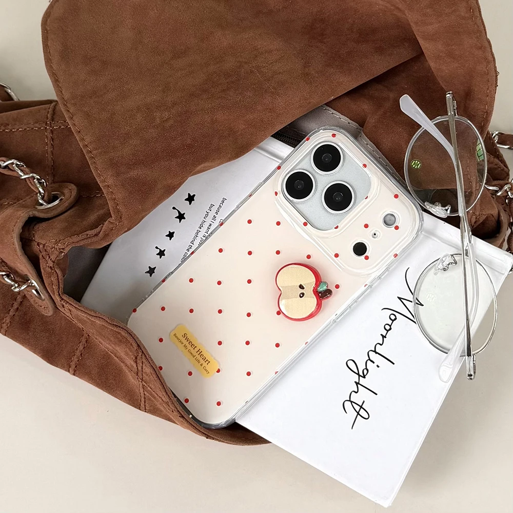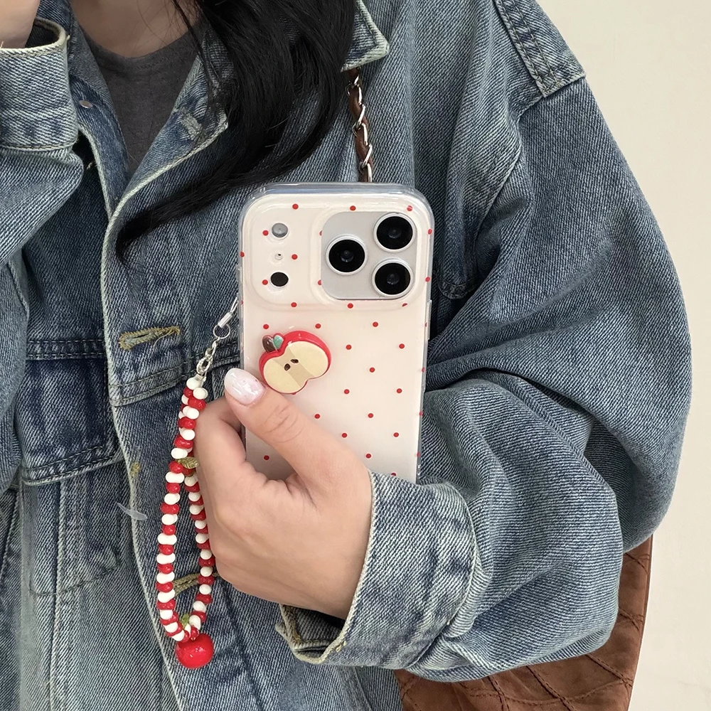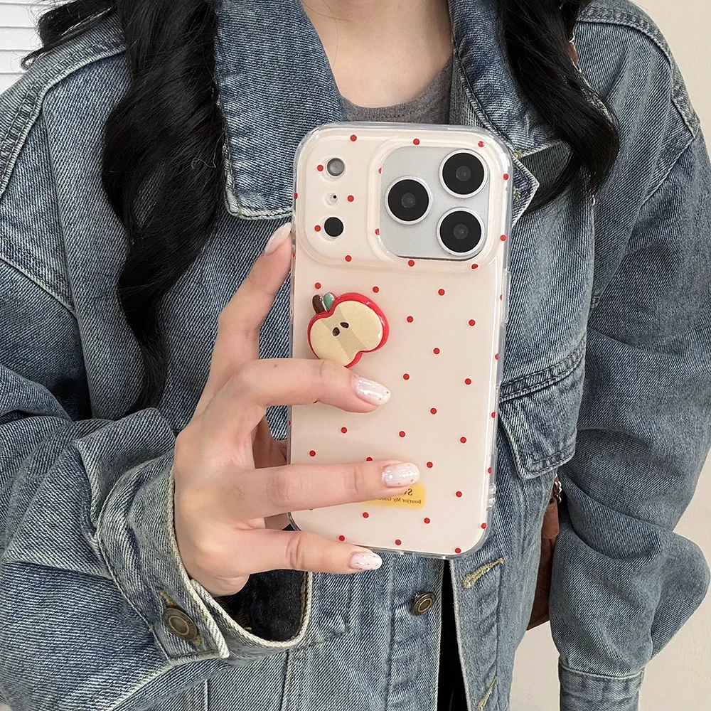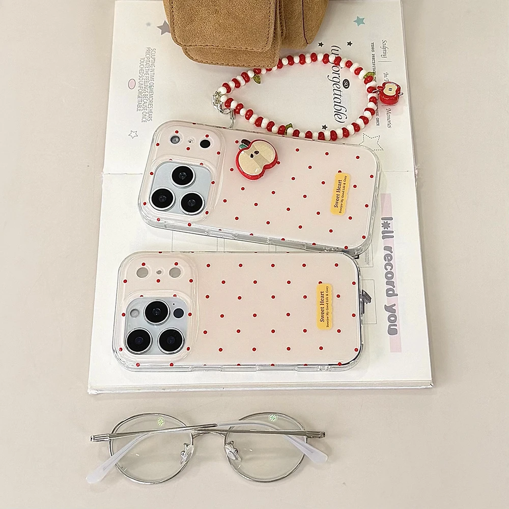 Funda de teléfono bonita 3D con rodajas de Apple y lunares rojos para iPhone 13 14 16 15 17 17pro 17Pro Max, funda protectora suave a prueba de golpes