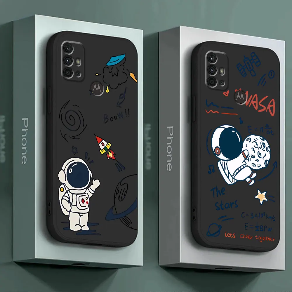 Comprar Bonita funda de teléfono con astronauta espacial para Motorola Moto G71 G72 G73 G60s G51 G31 G30 G22 G32 G52 G53 G60 G50 funda negra suave