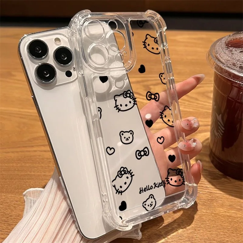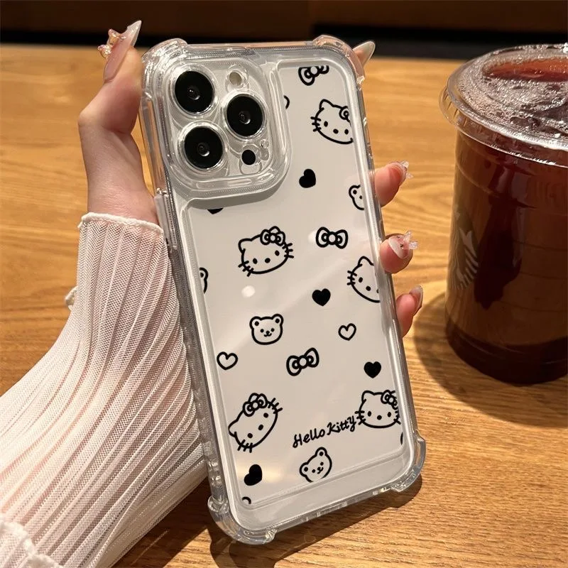Comprar Bonita funda de teléfono Hello Kitty para iPhone 16 15 14 13 12 11 Mini Pro Max X XR XSMax 7 8 Plus, funda transparente anticaída