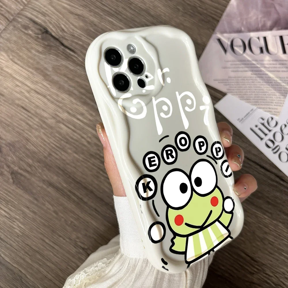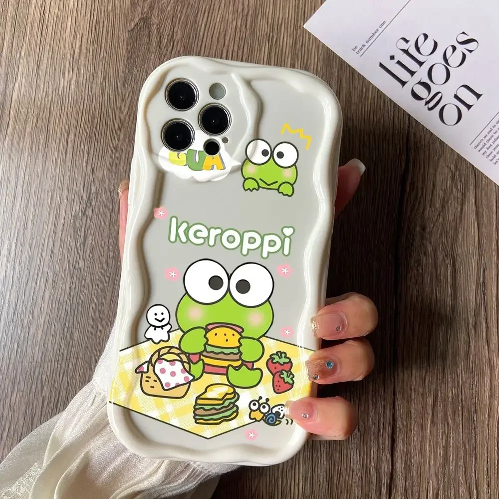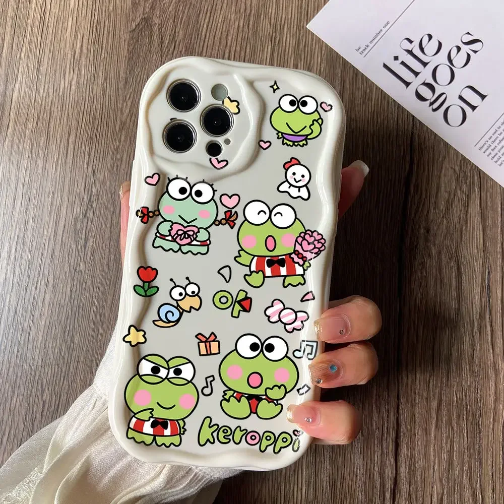 Comprar Bonita funda de teléfono Kero Keroppi para iPhone, 16, 15, 14 Plus, 13, 12 Mini, 11 Pro Max, X, Xs, XR, 7, 8, 3D cremoso Wave Soft Cover