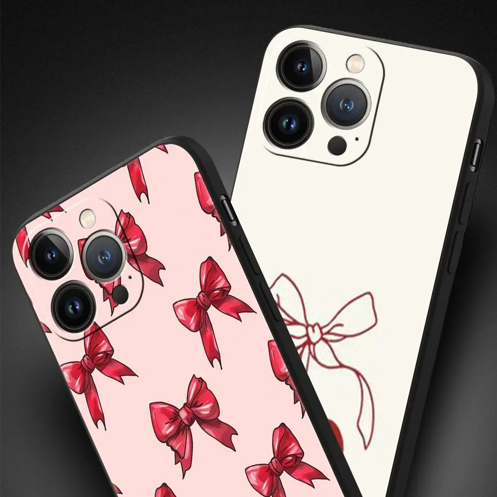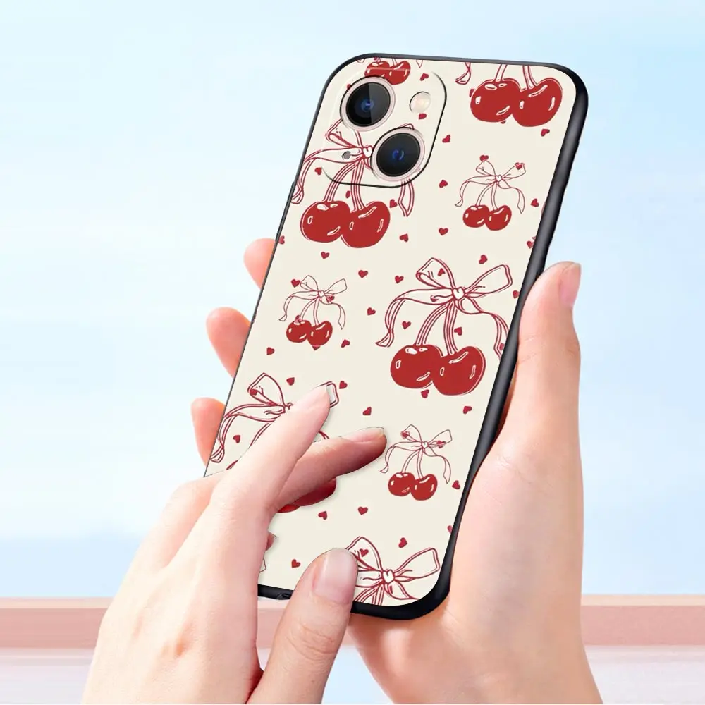 Bonita funda de teléfono con lazo de cereza para iPhone 16 13 15 14 12 11 Pro MAX XR X SE XS 7 8 Plus, funda suave de TPU