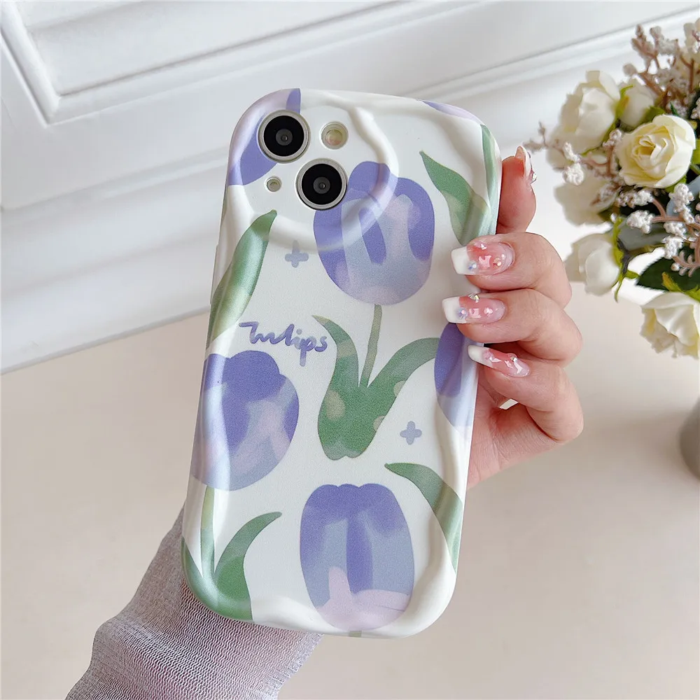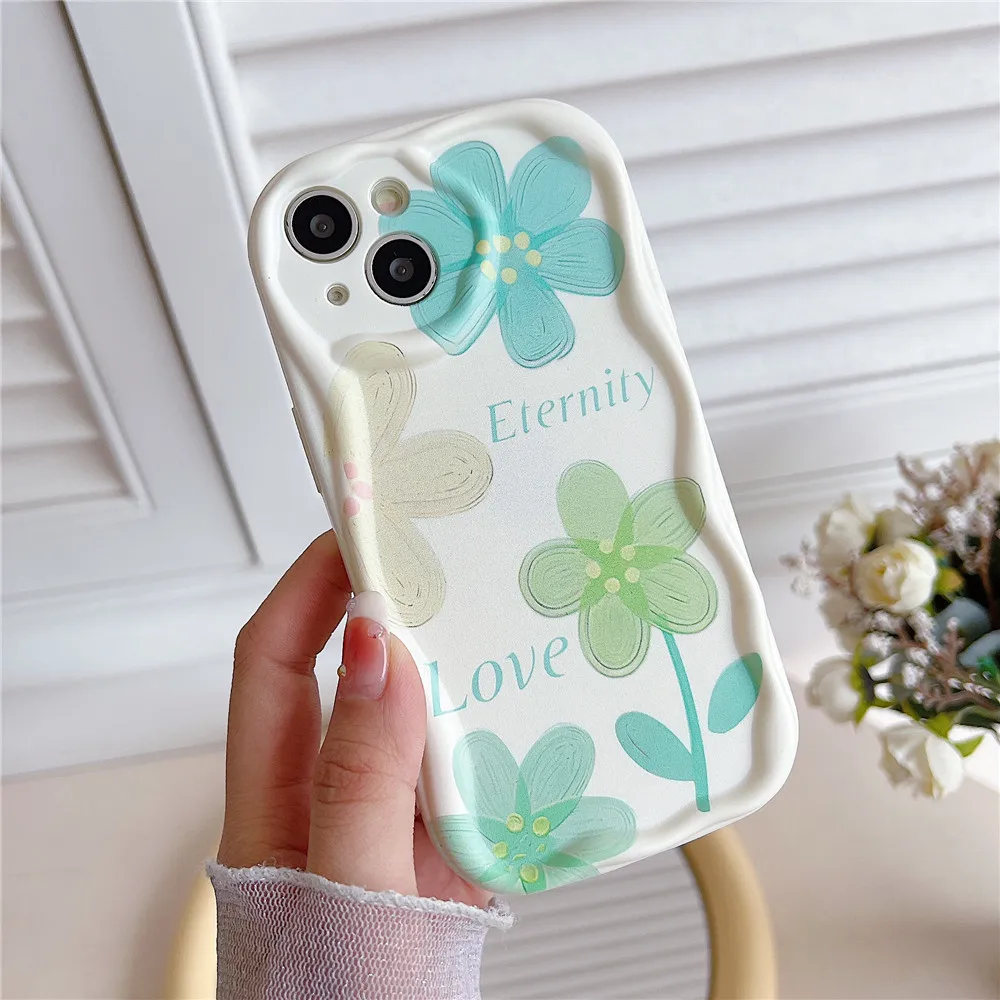 Cute Curly Wave Cream Phone Case For iPhone 15 14 13 12 11 Pro Max XR XS X 7 8 Plus SE 2020 Soft Silicon Camera Protection Cover