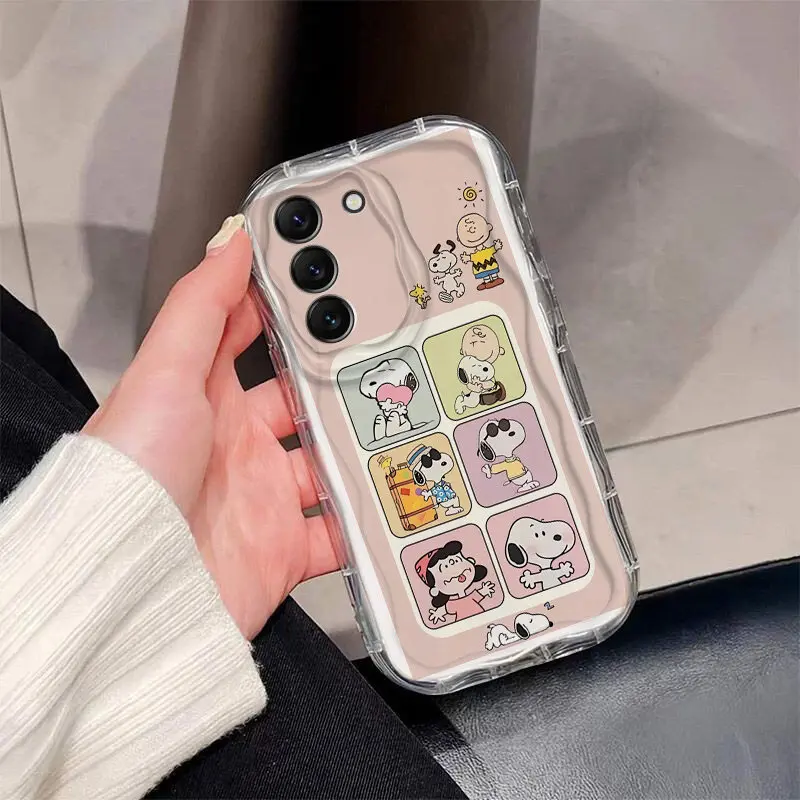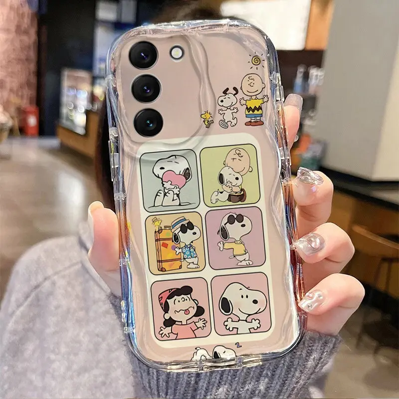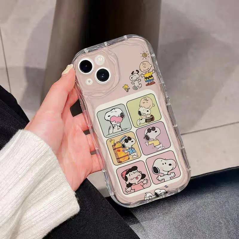es linda la carcasa, pero a mí no me gustó porque pensé que era transparente y además que queda muy grande, es mi opinión, lo otro es quea imagen de snoopy si te su casita sale cortada