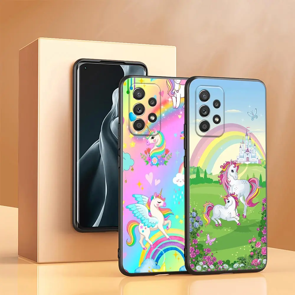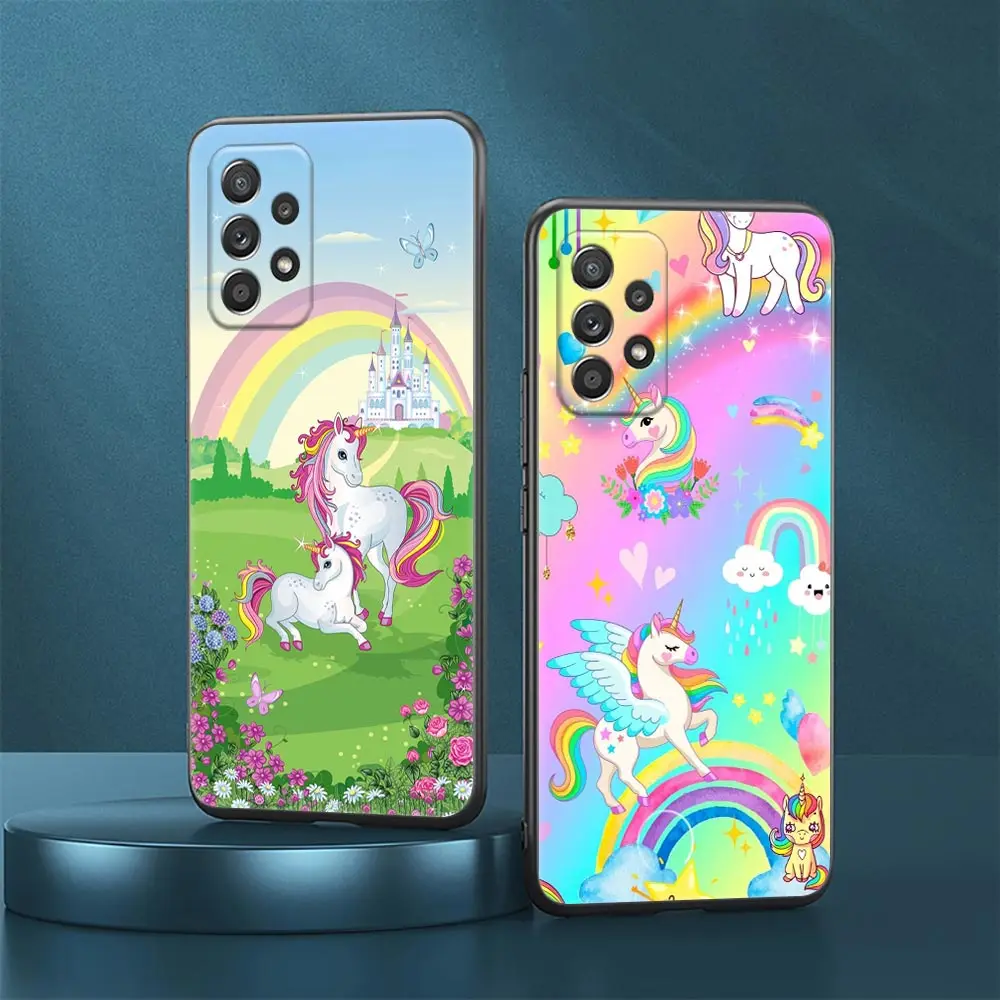 Comprar Bonita funda de unicornio arcoíris de dibujos animados para Samsung Galaxy A23, 5G, A13, 4G, A24, A23, A12, A14, A21s, A22, A01, A03, A04 S, funda suave para teléfono